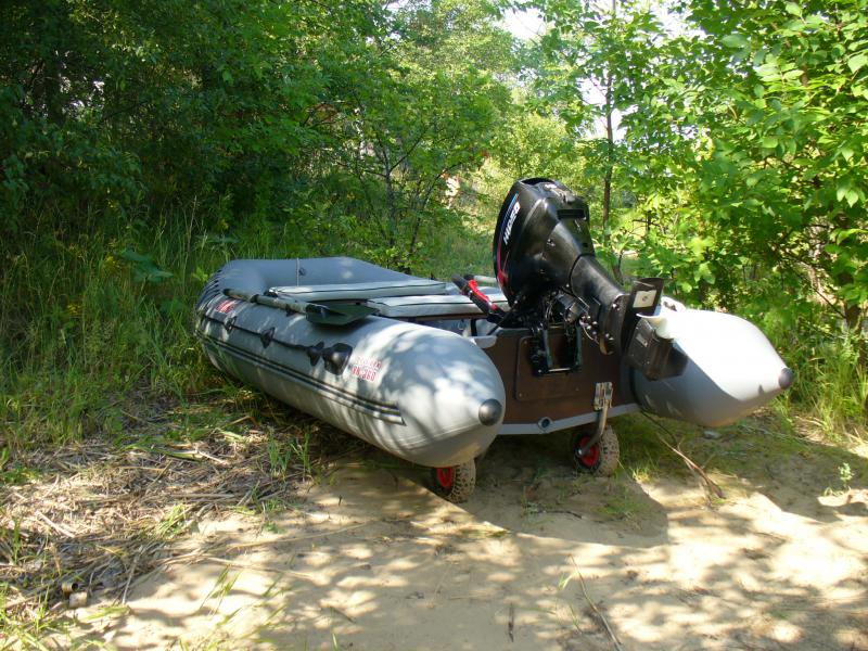 А по колесам - противовес лишнее. Удобнее будет под нос лодки сделать с'емную одноколесную тележку с ручкой. На просторах инета видел сей девайс когда то. Попробую поискать.