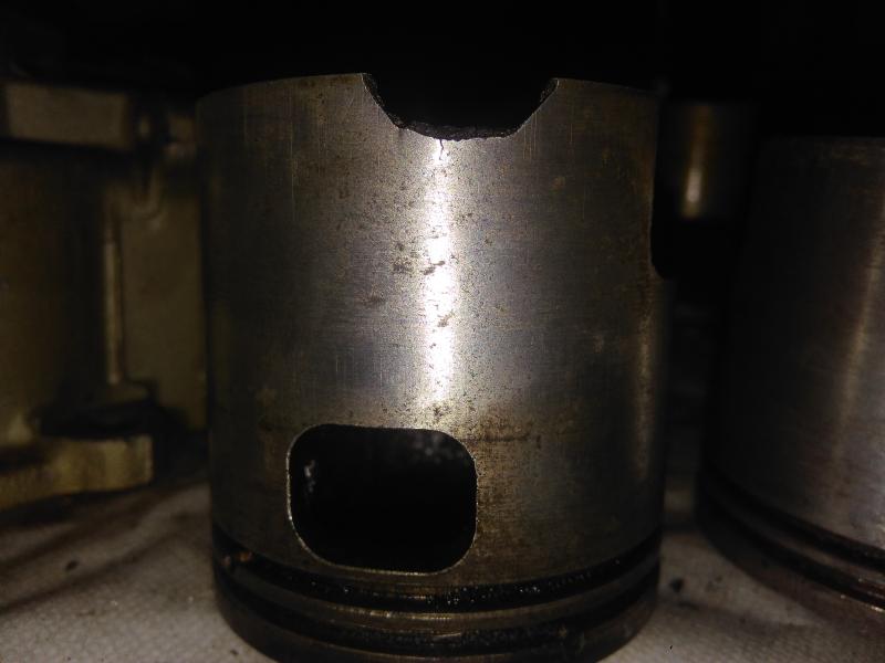 Уважаемые водномоторники! В процессе нелегкой разборки мотора шатуном повредил юбку со стороны противоположной стрелочке.