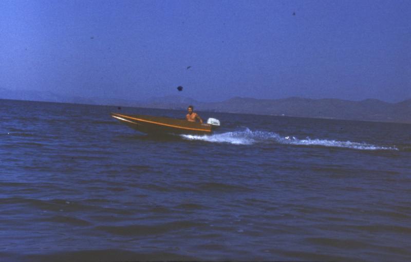 Подобной реакции я ожидал. Но в 80-е годы GPS не было. Приходилось, сравнивать скорость с «Ракетой» или катером «Волга», а от «Амура» или «Прогресса» с двумя «Вихрями», уходил, как от стоячих. Всё это было на Бухтарминском водохранилище, сейчас это Казахстан. Потом переехал в Копейск, озёр рядом много, но абсолютно неинтересные. В 100 км есть Аргазинское водохранилище, летом покатаюсь там. К сожалению, в 90-е оба «Нептуна» и 3 маленьких «Москвы» у меня украли, вероятно, на металлолом. «Радуга 34» фанерная с оклейкой 1 слоем стеклоткани за эти годы сильно обветшала. Весной буду, или разбирать её и делать новую, используя её детали, как выкройки, или сделаю стеклопластиковое, съёмное днище, на купленного здесь польского «Пеликана». Так, что документальное подтверждение скоростных качеств, будет летом с GPS. Я согласен, что у» ГВИША-1», с увеличенным шагом к.п,д. маловат, сделать самодельные винты, что позволило бы еще выше поднять скорость, нет технологических возможностей. Но привожу фото подводной части нового «Нептуна 25» переделанного под высокие скорости, убраны все выступающие части, сделаны обтекатели и всё отполировано, как было и на украденных моторах. Я понимаю, что судить о скорости по фото, трудно, но брызги от волнения (оно всегда на большом водохранилище), посмотрите на других фото. Большая скорость достигается и из-за лодки с гидролыжей, она идёт чисто на ней, ширина чуть больше 300 мм, вместо 1,5 метров и более, у других лодок, очень малого её веса, и абсолютно спартанского снаряжения, я один мог переносить её над головой (правда не взвешивал), но Зиминская конструкция, очень прочная, соответствует авиационным стандартам. Также подобрано минимальное рабочее, заглубление мотора. В результате гидродинамическое сопротивление минимально. Насчёт мощности, посмотрите в «КиЯ» отчёты по соревнованиям в классах 350 куб/см и 500 куб/см, с «Нептунами» и «Вихрями» и убедитесь, что результаты то одинаковые. На 60 км/час уже катаются на голых пятках без лыж, правда на других мощностях, на ходу руку в воду не сунешь, отбросит, поэтому необходимо всемерное уменьшение сопротивления, во всех мелочах. Зная ходовые качества «Радуги 34» не вижу никаких оснований обвинять во лжи видео из Интернета.