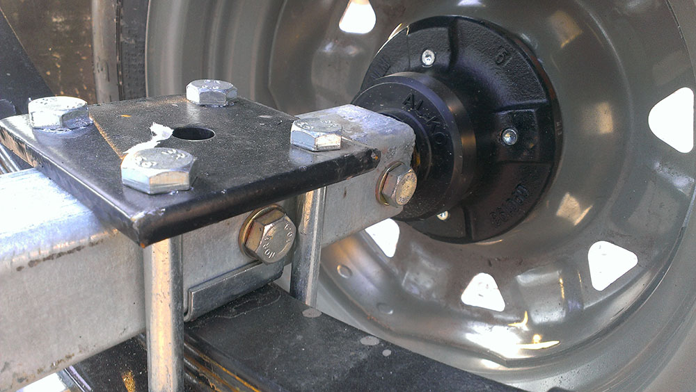 Точки приложения нагрузки на ось от рамы. Нужно вспомнить сопромат. Левая или правая (задняя или передняя) половина рамы ни что иное как "балка на двух опорах". Фаркоп правда нагружать не стоит (разрешенную нагрузку фаркопа до 100 кг. можно не принимать в расчет, если общий вес под 1 т.), поэтому скорее балка с одной опорой. Наибольший изгибающий момент будет там, где наибольшее плечо (правда при условии, что действующие силы - в данном случае нагрузка от веса лодки - равны). Плечо в данном случае расстояние от стойки ложемента до центра оси прицепа. Перемещение оси вдоль рамы дает возможность компенсировать нагрузку. Добавление еще одной оси делает из нашей рамы уже "нагруженную балку на двух опорах", уменьшает плечо приложения силы и уменьшает изгибающий момент.