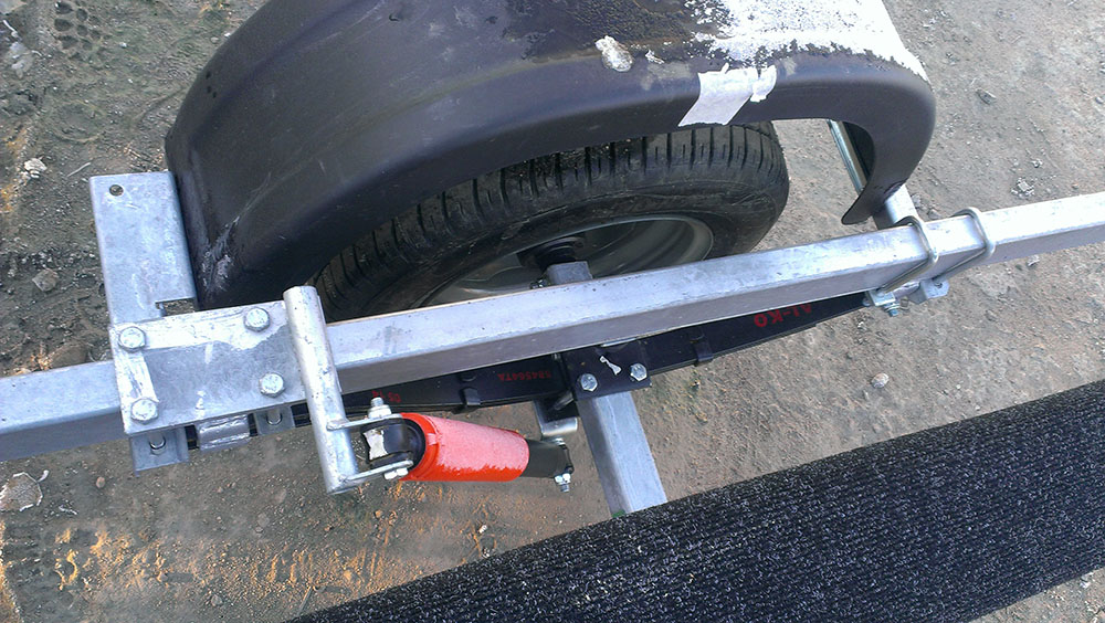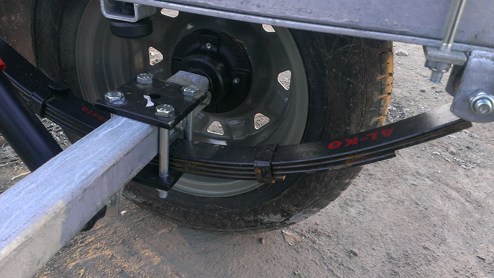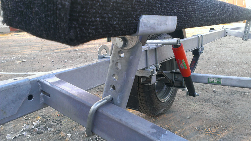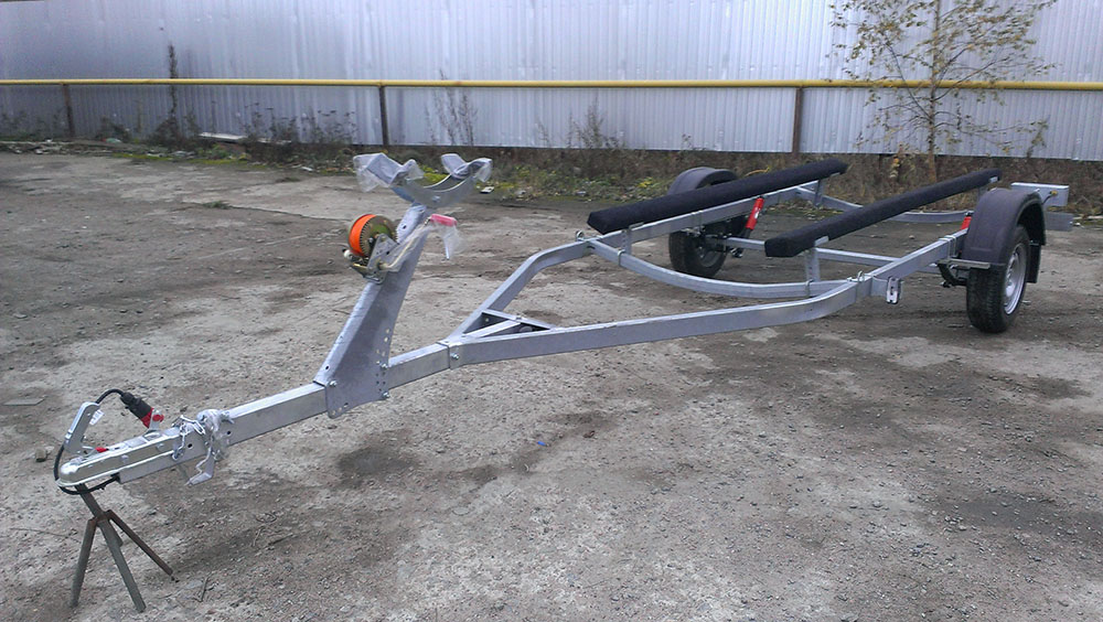 Точки приложения нагрузки на ось от рамы. Нужно вспомнить сопромат. Левая или правая (задняя или передняя) половина рамы ни что иное как "балка на двух опорах". Фаркоп правда нагружать не стоит (разрешенную нагрузку фаркопа до 100 кг. можно не принимать в расчет, если общий вес под 1 т.), поэтому скорее балка с одной опорой. Наибольший изгибающий момент будет там, где наибольшее плечо (правда при условии, что действующие силы - в данном случае нагрузка от веса лодки - равны). Плечо в данном случае расстояние от стойки ложемента до центра оси прицепа. Перемещение оси вдоль рамы дает возможность компенсировать нагрузку. Добавление еще одной оси делает из нашей рамы уже "нагруженную балку на двух опорах", уменьшает плечо приложения силы и уменьшает изгибающий момент.А это точки компенсации(подрессоривание)нагрузки приходящей сверху от стоек ложементов.