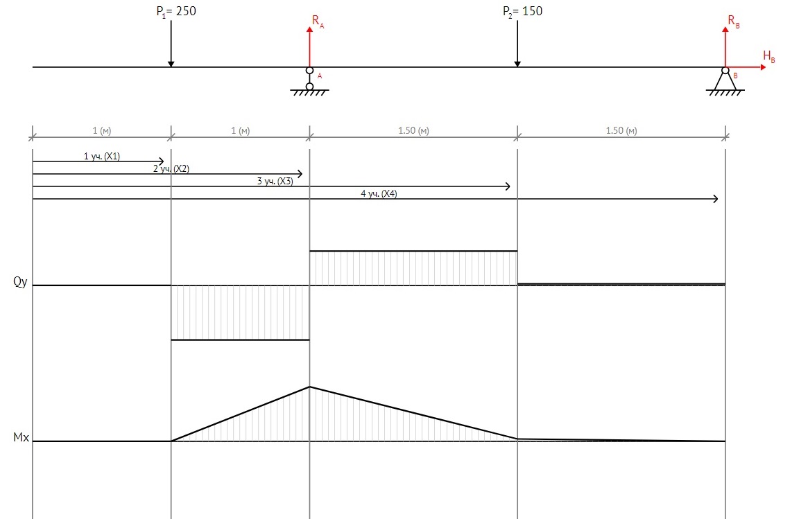 Конструктор не дает возможности рассчитать балку с одной опрой (а считать самостоятельно лень), т.к. считает ее в этом случае с перемещаемой опорой ( т. е. механизмом), или делает расчет только если балка защемленная. В нашем случае это не так. Приходится добавлять еще одну опору. Если угодно - опора А - центр оси прицепа, опора В - фаркоп (одна шарнирно подвижная (точка А), вторая шарнирно не подвижная (точка В). Их можно поменять местами - результат будет примерно такой же). Нагрузка условно приложена в местах где стойки ложементов приварены к раме, причем это не распределенная нагрузка, а именно точка приложения силы (в данном случае нагрузка от веса лодки). Схема условная и неточная - но для инженерных расчетов вполне сгодится. Кстати, Ваша схема такая же, только в качестве опор выбраны крепления рессоры.