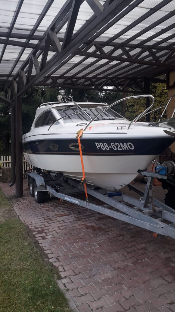 Катер с кабиной продается вместе с прицепом Респо, модель V81T3, 2008 г.в., 3500 кг разр. м, 850 кг масса без нагрузки.