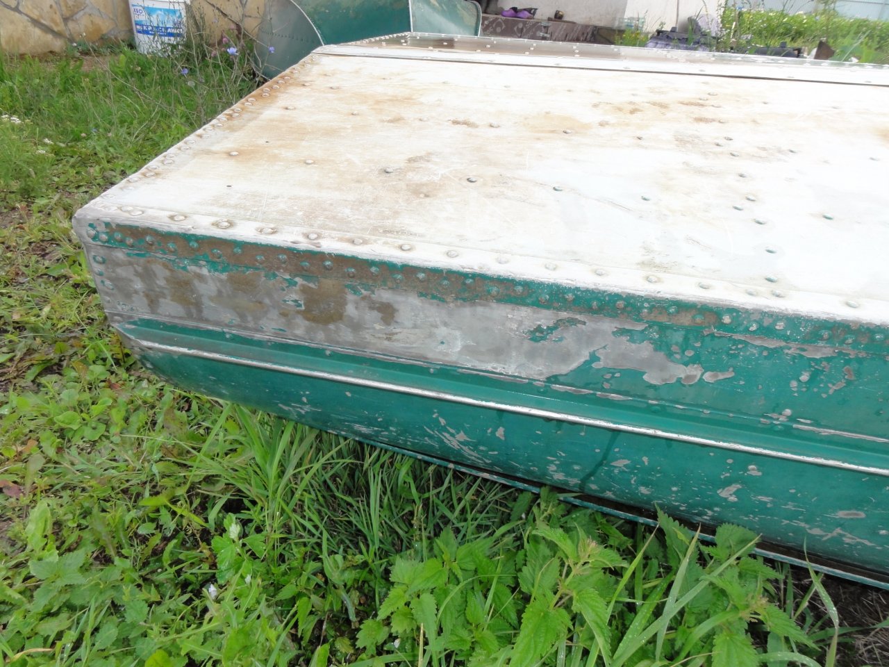 Вот эта лодка достаточно живенькая. Заклепки на днище в районе транца подстерлись, но на сезон точно хватит. С помощником за день точно переклепать можно. Я-бы только покрасил днище и частично борта в районе глиссирующей части лодки хотя-бы какой-нибудь ПФкой чтоб до конца сезона пескоструилась краска на лодке, а не плакировка на дюрали.
