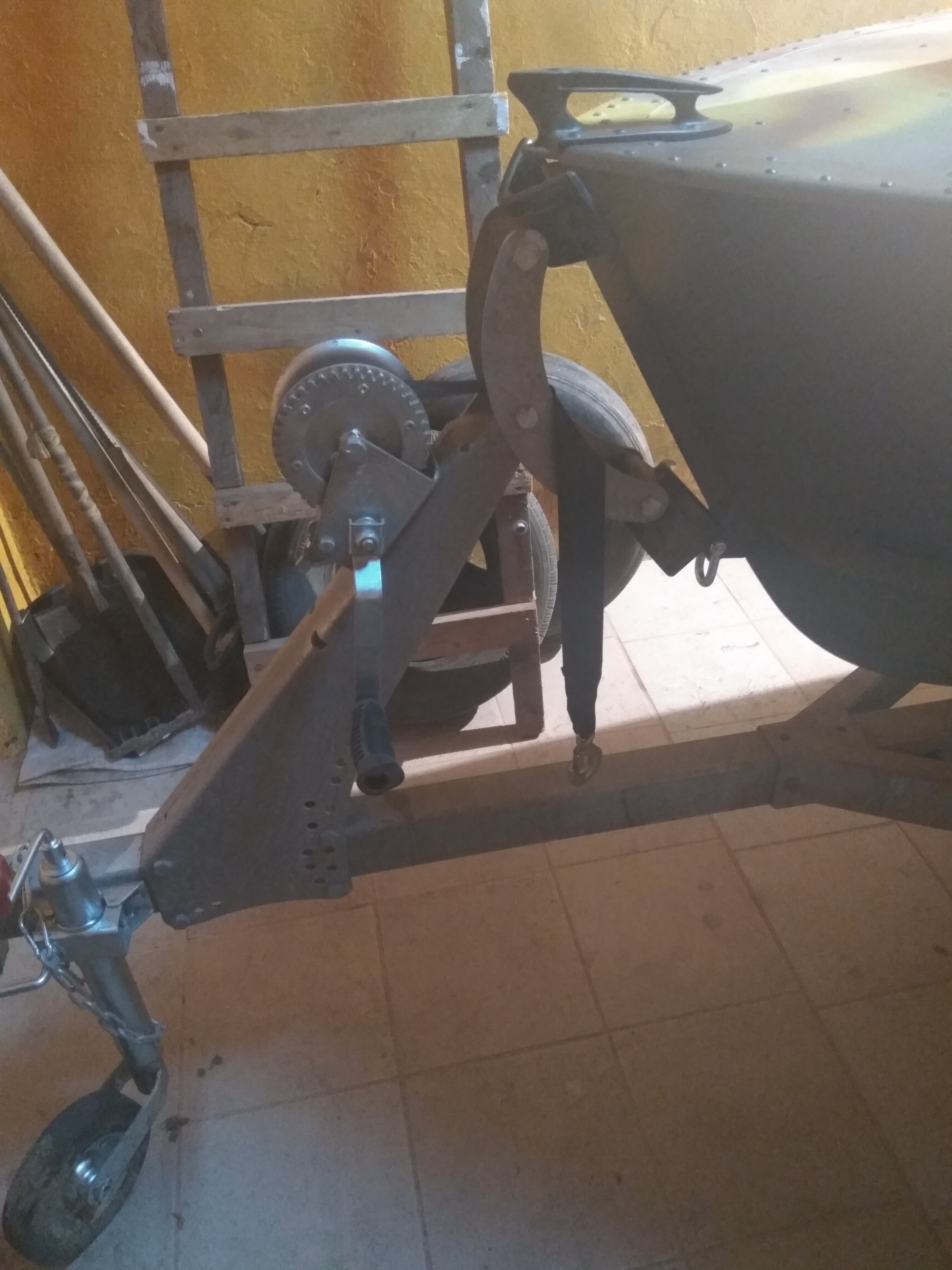 На счет ложементов понял - буду поднимать, вместо качели поставлю черный упор. На сколько я понял крепить лодку лебедкой нежелательно. Тогда остается вариант найти длинный талреп и крепить за нижние дырки в упоре.