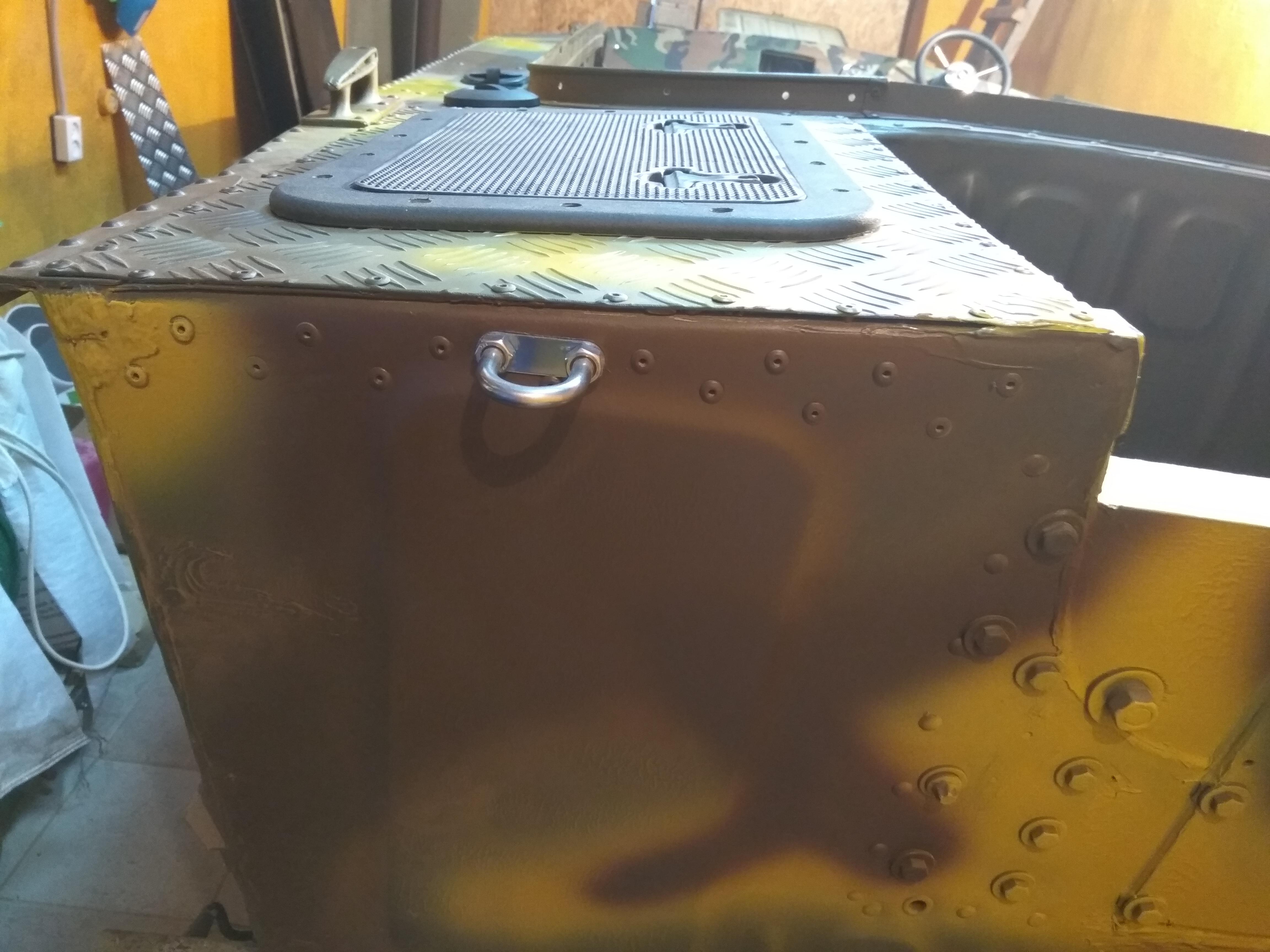Ящик под акум решил оставить большой. Стоять будет по центру рядом с баком, по другому не придумал куда его засунуть.