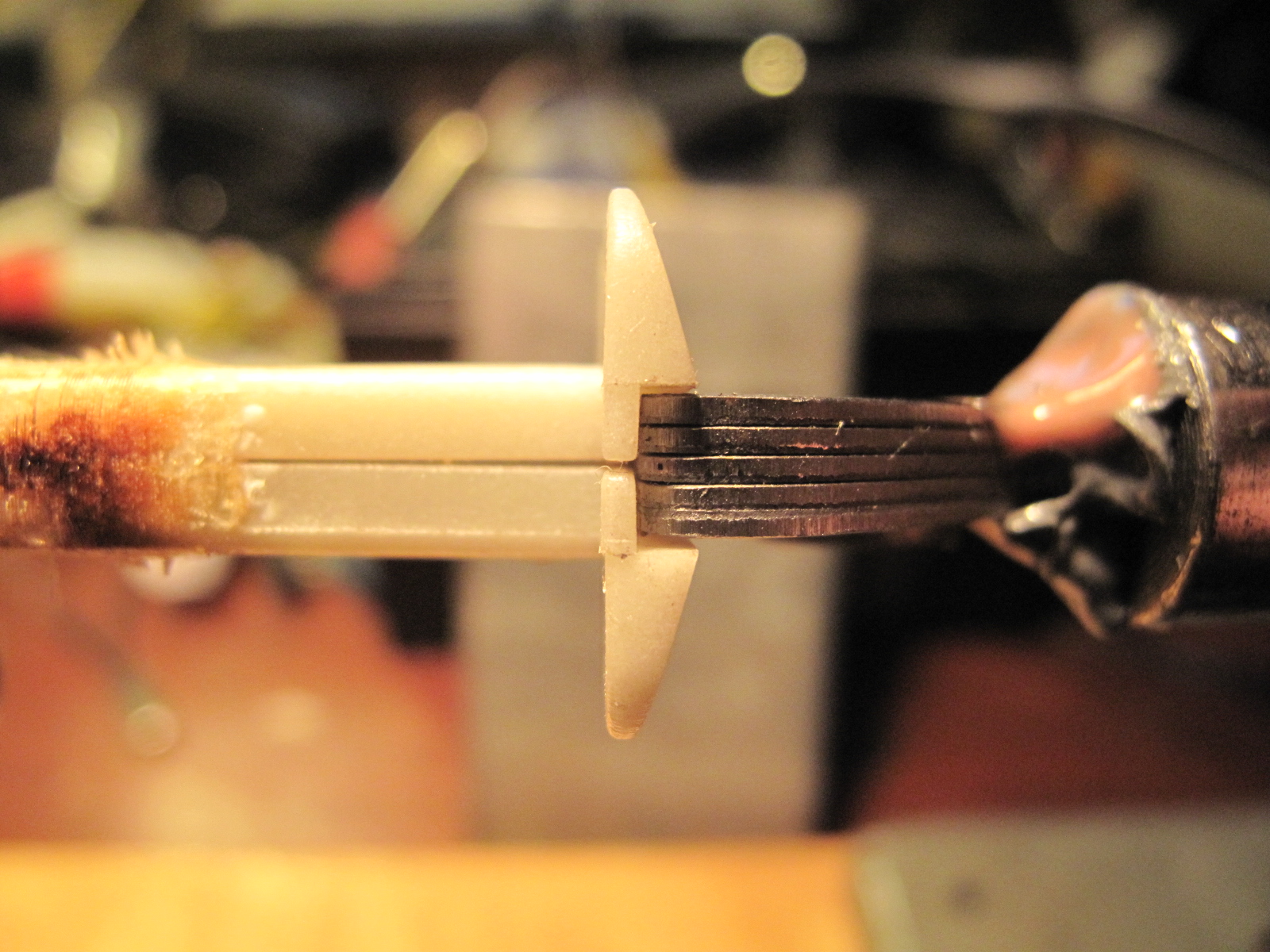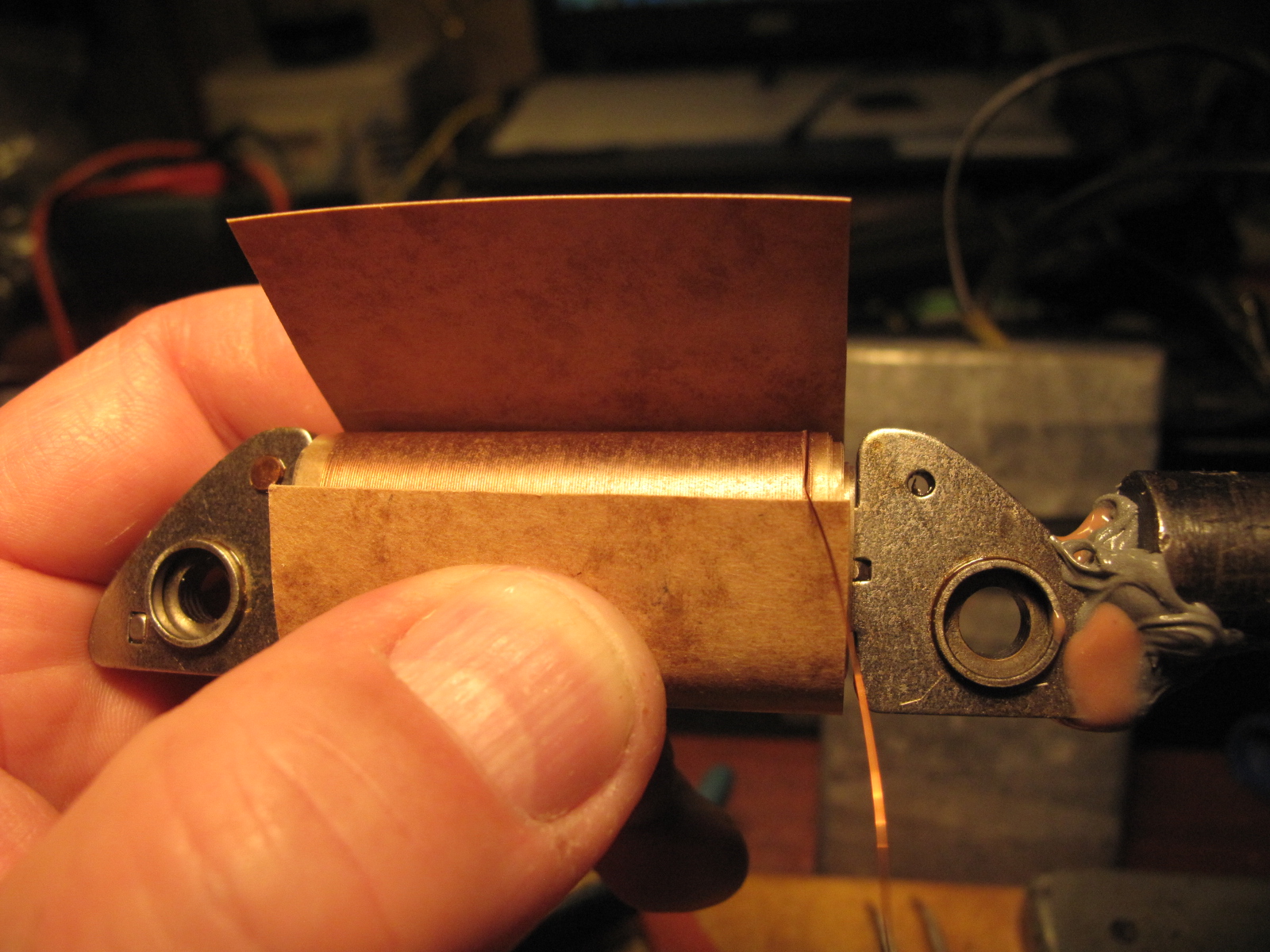 Железо опилено по углам надфилем и мелкой наждачкой, обмотано тремя витками этой же бумаги обмазанной эпоксидкой.