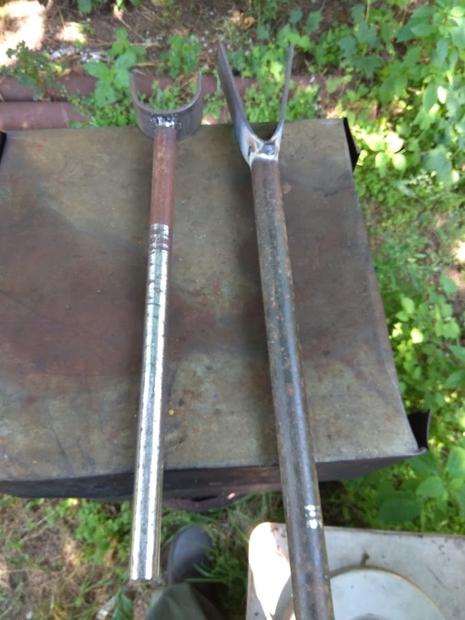 Скобы из стальной полосы, одна выгнута в тисках на отрезке трубы (которая на килевой ролик), вторая тоже в тисках в виде буквы V.