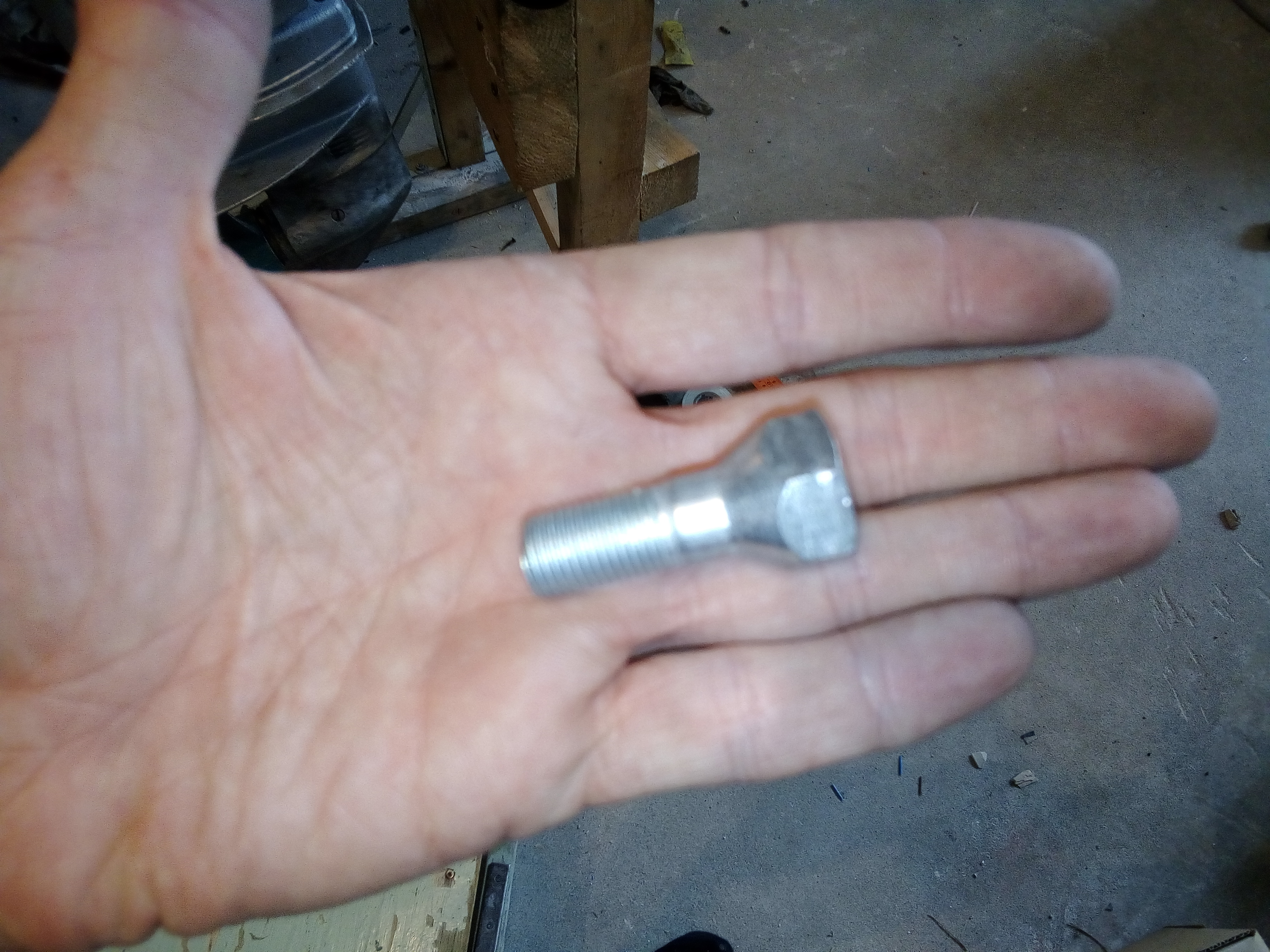 Наверное не только меня раздражает пластмассовая гайка на бензонасосе, на которой при попытке затянуть потуже срывается резьба. Кто-то на форуме уже писал, что выточил такую шайбу из металла. А как быть тем у кого нет доступа к токарному станку? Пришло в голову простое решение, которым делюсь с вами. Покупается болт с конусом для крепление автомобильных колес, отрезается резьба, сверлиться осевое отверстие и нарезается в нем резьба, по-моему М5 уже точно не помню. На гранях головки болта еще можно насверлить отверстий М2 чтобы вставляя в них скажем гвоздь удобней было затягивать эту гайку на установленном бензонасосе.
