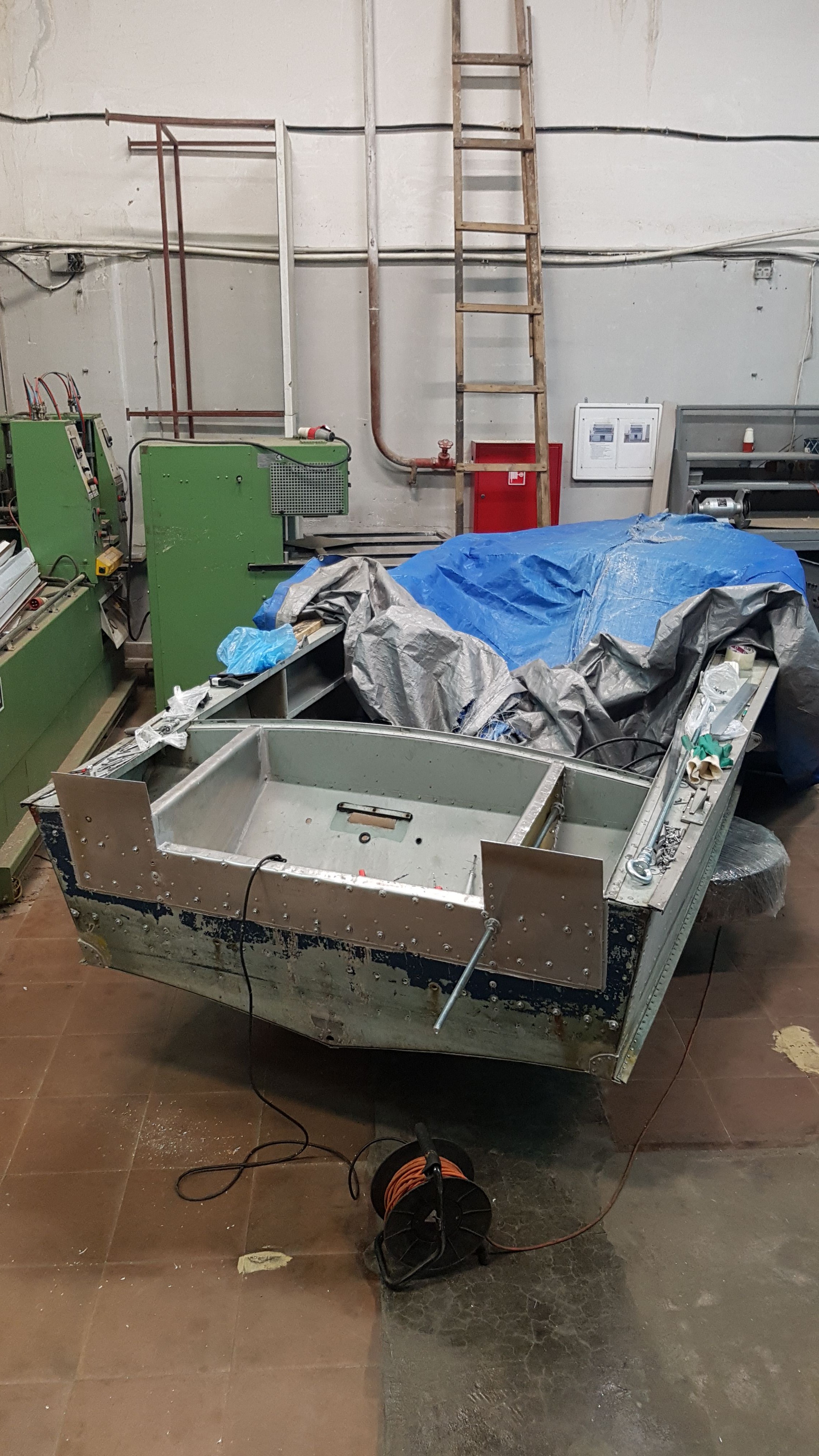 Аккумулятор впереди, частью под панелью, в ящике. Используется в качестве ступеньки. Помпа сзади) В носу, бортах и под сланями пеноплекс. Объем, правда, не считал. Не понятно удержит ли, если что...