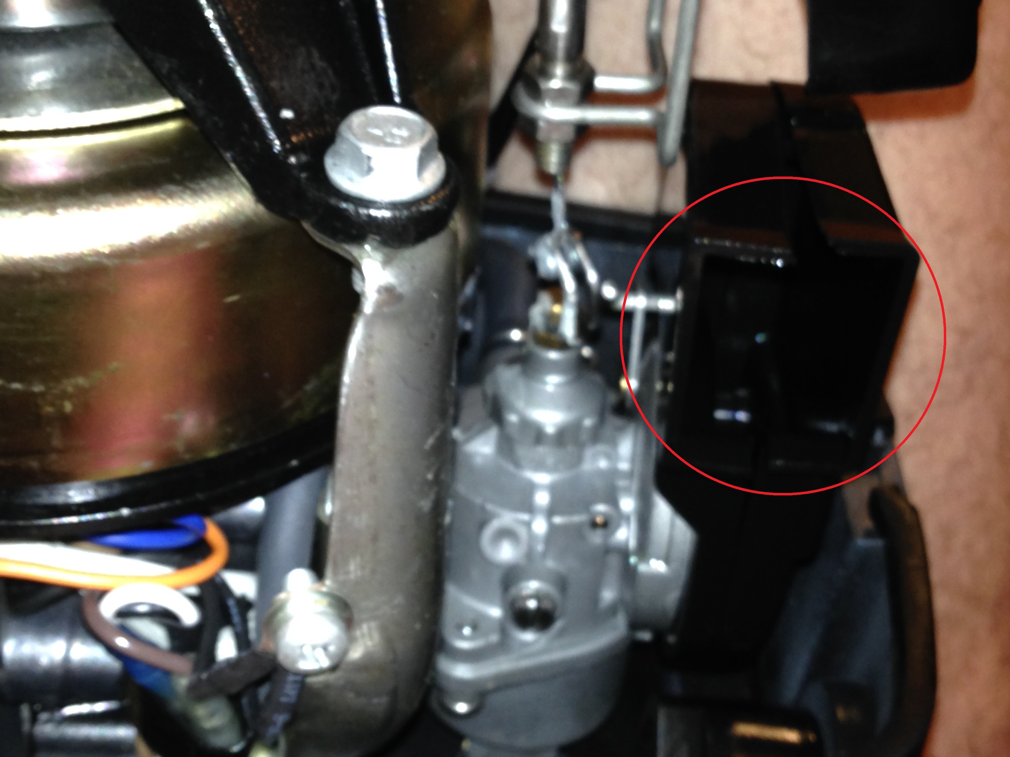 3. Заслонка карбюратора (фото "Заслонка карбюратора"). Я правильно понимаю, что чтобы включить подачу смеси для запуска двигателя, я должен повернуть переключатель из положения на фото против часовой стрелки.