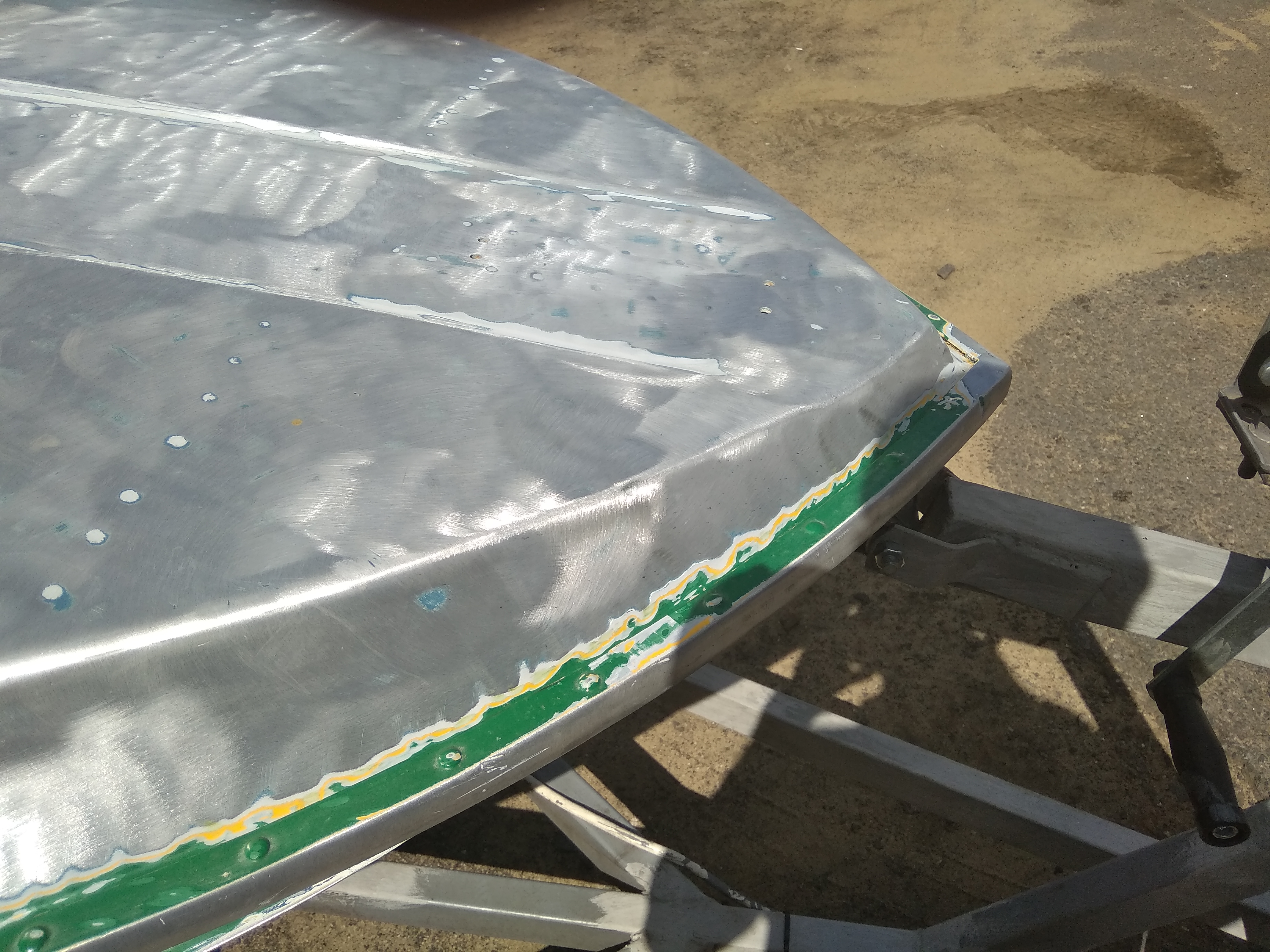 Эти места заварили аргоном, утки решено опетпескоструить и не красить, лодка сейчас в процессе покраски. Фото до сварки, через пару дней выложу после покраски