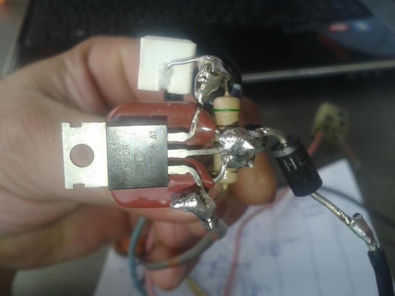 Второй диод припаял клевой ноге теристора и кним же два провода черний на масу серый на катуху точка 2 посхеме тобиж втарой вывод из катухи .Красний з третево диода на катуху точка 3 на схеме тобиж третий вывод из катухи .