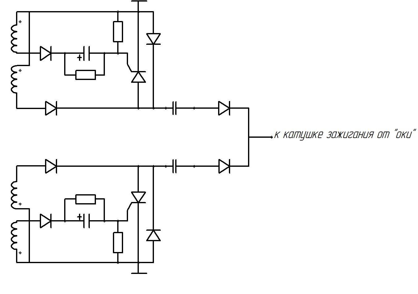 Ну да,обычное дело-контактные маховики могут отличаться моментом искрообразования в этой схеме.Про это я уже пишу не в первый раз,да и не только я.Не попал сразу на нужный УОЗ-поменяй концы на обеих катушках.Других маховиков нет-ИЛИ-ИЛИ.Может на нем магнит треснут.Владимир45 сказал(а):дмитрий22 гон-С первым маховиком концы катушек менял,как написано выше, искра есть но не заводится стреляет или в обратку бьет, значит искра не в тот момент. Для интереса тестером проверял оба маховика прокручивал рукой разница по искре 90 градусов.