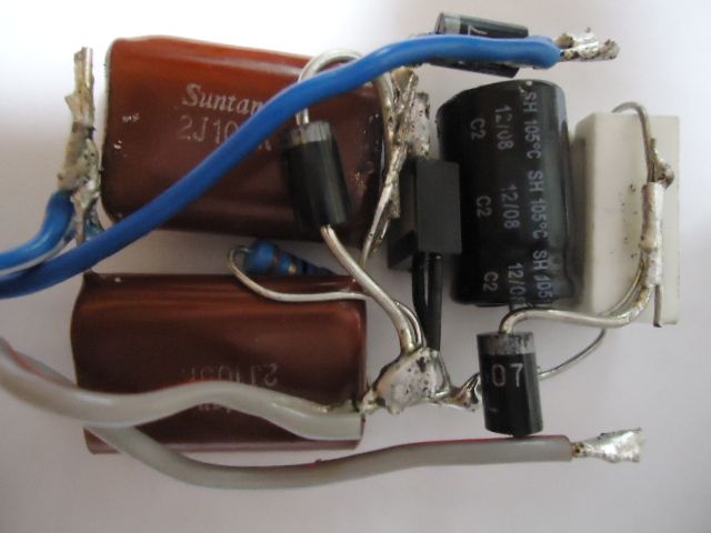 Попробую поменяю диоды у меня сейчас 207 воткну 307. ТЛМ ставил разные (рабочие) и с рабочих движков, колпаки выкинул. Попробую поменять провода (высоковольтные) но думаю наврятли. А от печатки у меня ничего не осталось, есть некоторые дорожки (пропаивал дополнительно) но в основном использовал её для удержания деталек. Всем спасибо за советы. Буду пробовать.