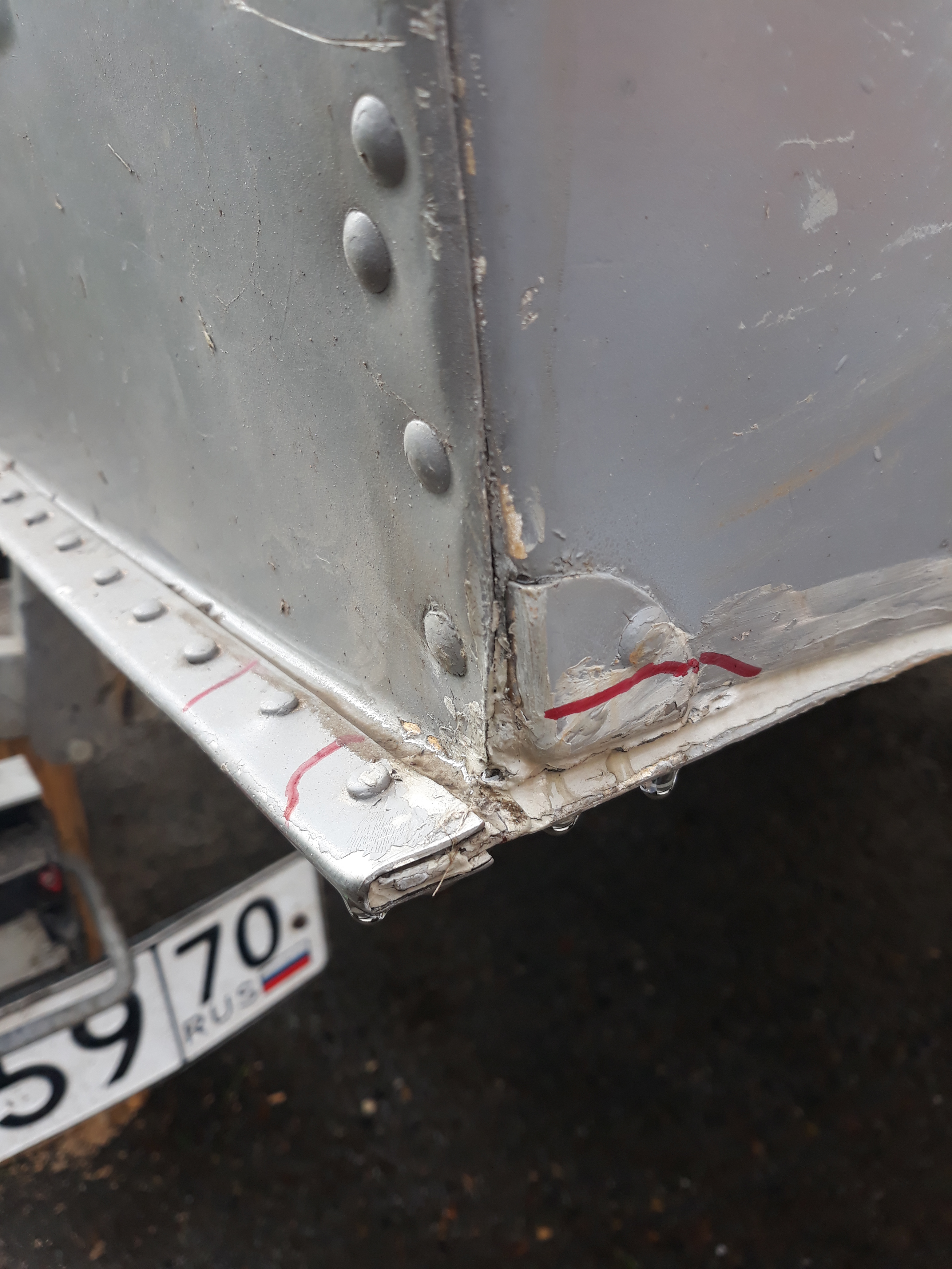 Самое интересное везде в теме они из черняги но когда я все зачистил, убрал шпатлевку старую, уголки на заводских клепках и они алюминиевые в нормальном состоянии, думаю менять их не надо, в принципе я разогнул немного алюминий на днише кормы и постарался внутрь резиновым шпателем загнать стекольный герметик и потом молоточком опять загнул их на место, как разогнул видно на фото, не спорю что лучше было бы срезать все заклепки замазать стекольным герметиком и заново заклепать, если бы предыдуший хозяин сделал это, а он начал сразу усиливать транец и теперь сложно подлезть под рецесс, но за подсказку большое спасибо времени много, что нибудь пидумаю, а вот по бортам внизу какое предложение все раклипать от транца до носа, промазать и заново заклипать, сочится только в трех местах, поджал клепки но все равно мокрит, если раклепать тот участок где мокрит промазать и заклепать то мне кажется потом побежит в других. п.с. уголки из черняги только вверхних углах транца.