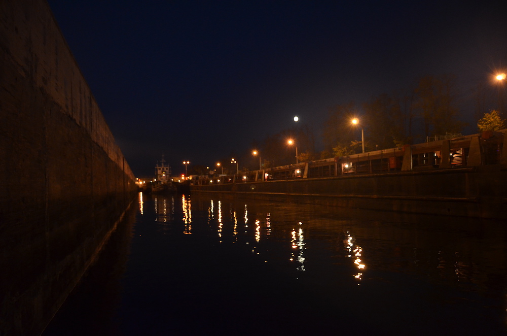 При выходе из первого шлюза мы так торопились за Восходом, что забыли поблагодарить диспетчера. Поэтому при выходе из второго шлюза поблагодарили сразу обеих: