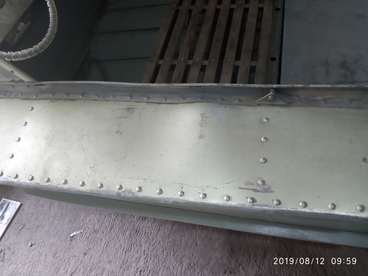 И не гнилой, что удивительно, обычно куйбышевские имея скулы из нержи гниют рядышком с ними, такие очаги коррозии под краской, пупырья с белым порошком, так у этого всего два очага! Наверное, всю жизнь на берегу хранился.