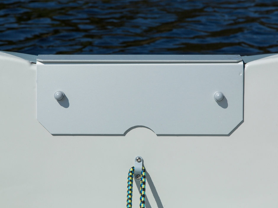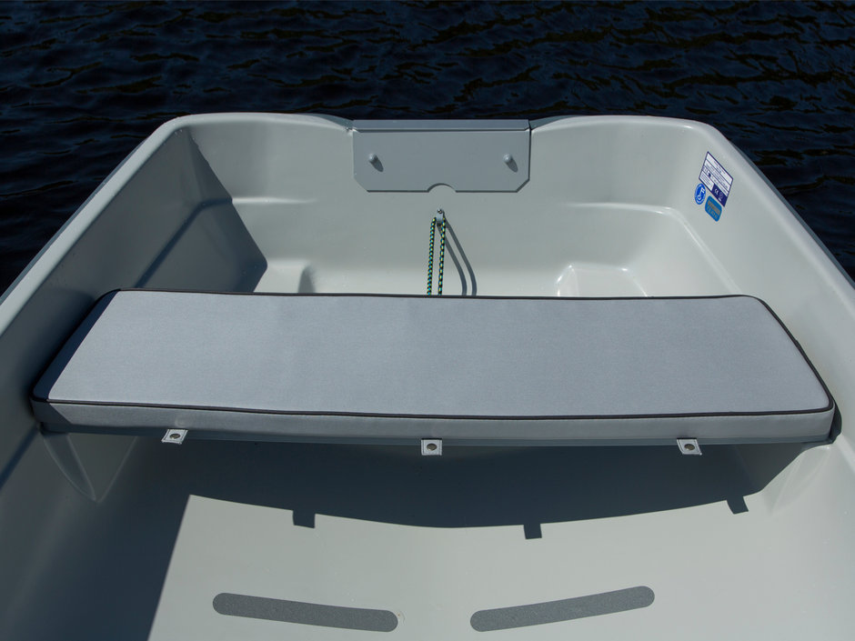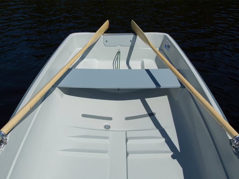 Пластиковая водоизмещающая гребная лодка, на которую, можно установить подвесной лодочный мотор мощностью до 9 л.с.