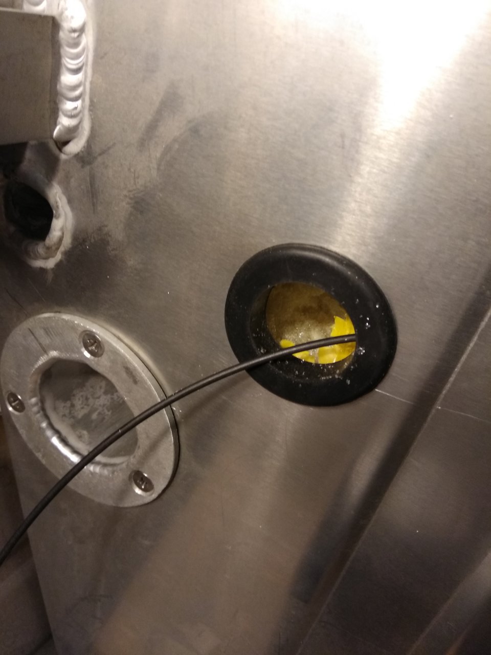 Края отверстий в корпусе защитил резиновыми вставками, провода уложил в черную автомобильную разрезную гофру.
