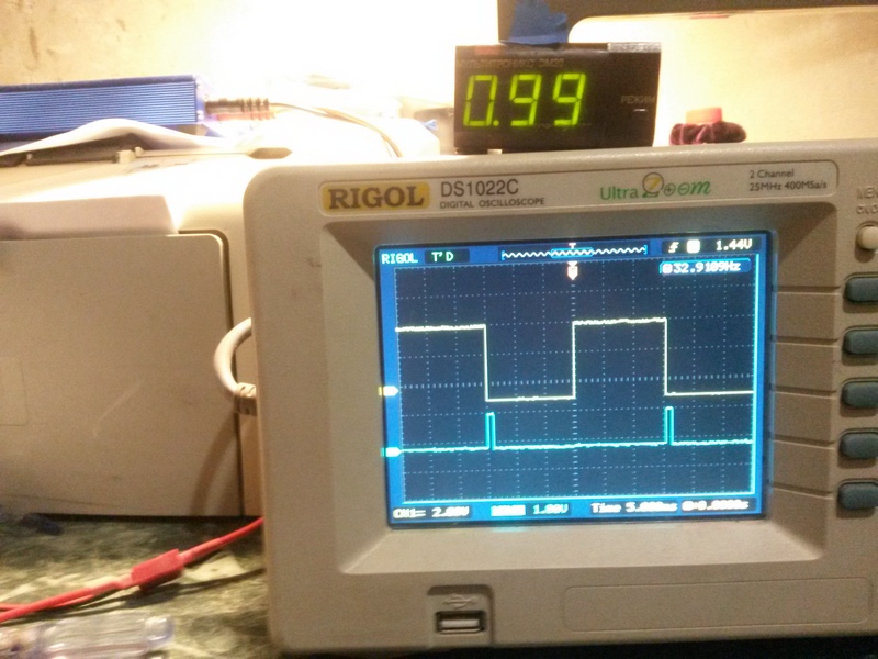 При оборотах до 1000 импульс зажигания не регулируется и совпадает с отрицательным импульсом ДХ, тут все хорошо.