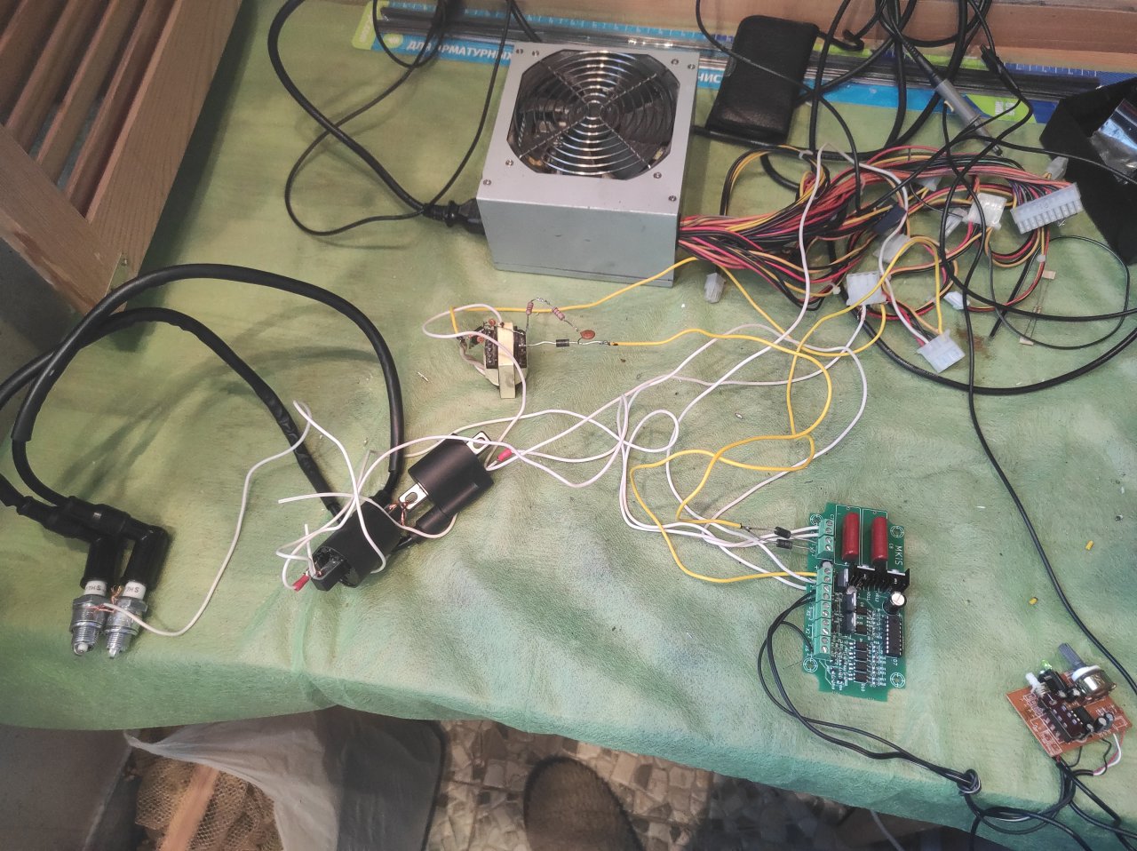 Никогда не заморачиваюсь с трансформатором для DCCDI, на фото выпускаемая мной плата для МПСЗ с DCCDI. Трансформатор на основе готовой индуктивности RLB1314KL, поверх 40 витков первички. 300В в 1мкФ накапливает за 6 милли сек, при питании 12В. То есть для одного цилиндра хватает за глаза. На 6000 немного тёплым становится силовой транзистор, отмечен красной стрелкой. Феррит холодный. Диапазон входных напряжений 3,5-20В. По мере снижении питающего напряжения ниже 12В время накопления увеличивается, температура транзистора немного возрастает. Для двух цилиндров ставится рядом ещё один такой транс.