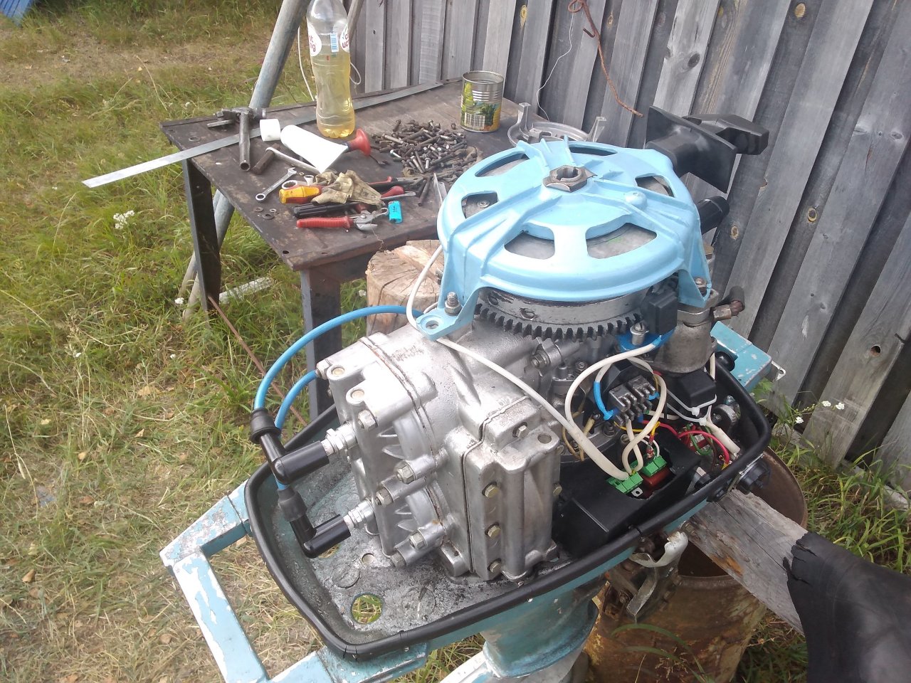 Готовим мотор и лодку к длительному переходу в верховье Северной Двины.