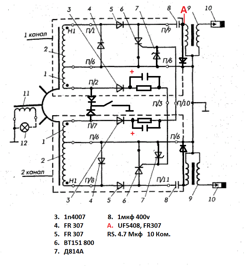 Так же применено шунтирование отрицательного импульса. Диод №4 отвечает за это.