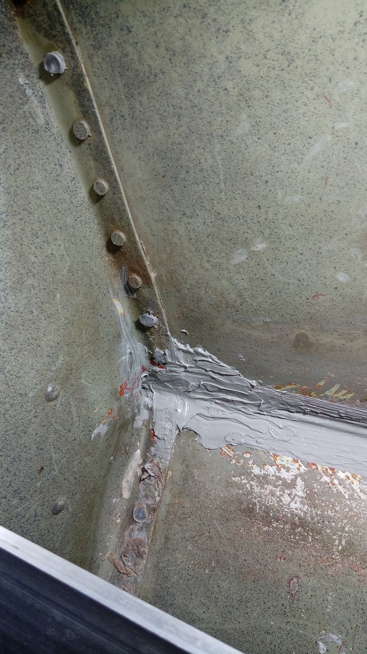 Можешь окрасить, потом латку поставишь. Она все равно изнутри будет, а несколько заклёпок можно и маленькой кисточкой всегда пройти. А можно и не красить их.Самое интересное,что нет течи.Внутри по килю герметик.