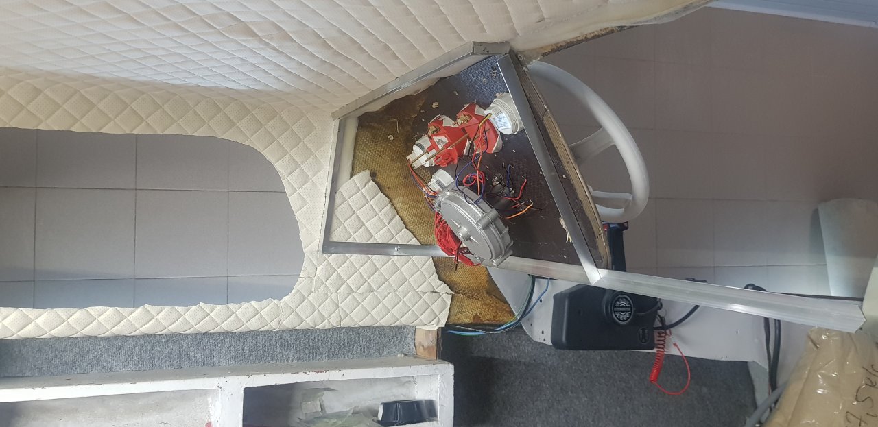 . Перестань спешить - на воду все равно долго не выйдем в этом году.Боря ни каких обид, скажу так, гараж теперь не в моем распоряжении , редуктор не вынес потому что в таком случае кресло нужно отдалять от штурвала а оно и так стоит на краю, я хочу чтоб можно было стоя рулить , швы такие в некоторых местах потому что не хватило обивки и пришлось мутить из кусков, именно этот просто прилепил он еще не приклеен , но самое главное это гараж ,вот 6 го нужно освобождать и дальше все делать на улицеИгорь, прости меня за прямоту, общаемся не первый год! Но для таких недешевых материалов и рассыпухи можно было бы и поаккуратнее делать. Лодка у тебя не первая!
