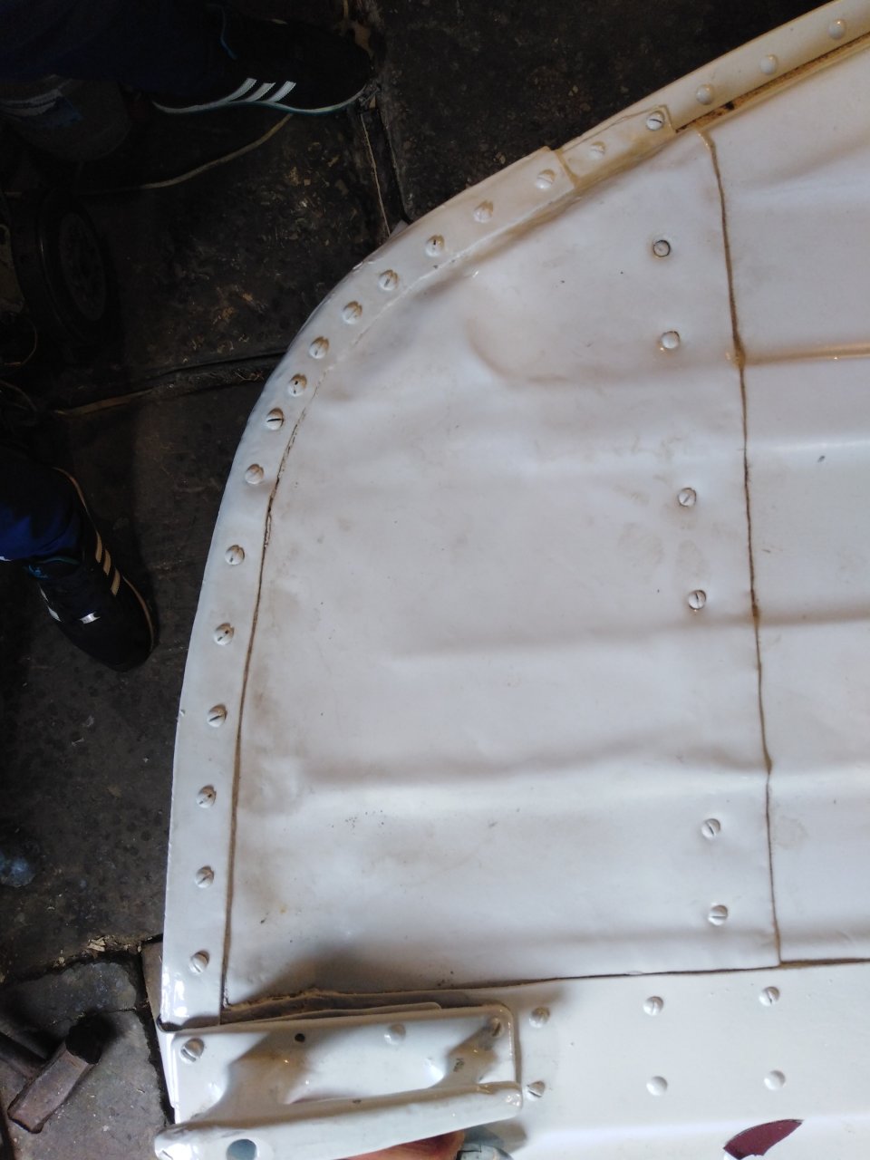 Всем привет! Нужен совет мужики!!! Имеется вот такая хрень на носу замятина и заплатка, думаю что делать?чтобы так в глаза не бросалось! Обшить квинтетом ? Просто денег жалко отдавать чтобы рихтовать это всё? Как думаете что лучше сделать? Что и как ударили я не знаю, так купил.