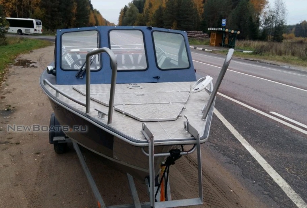 Килеватость: 19-транец, днище 4-5 мм, транец 5 мм, борт 3 с доп. усилением и блоками плавучести . Присутствует дополнительная защита от якоря, усиление силового набора носа, бак аэрации для рыбы с помпой аэрации (на носу).
