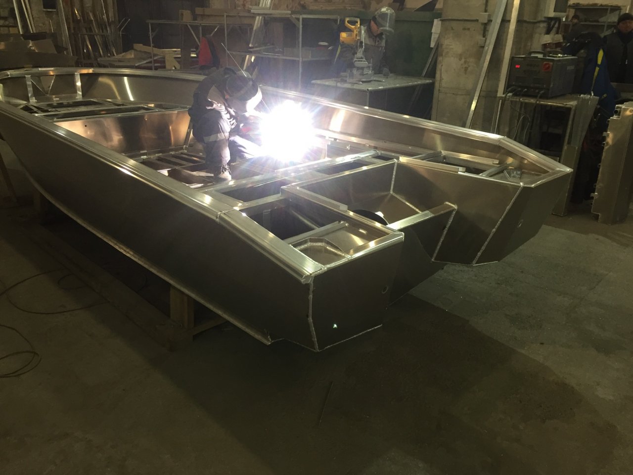 Первый цех где листы алюминия начинают приобретать очертания будущего шедевра. Плазменный станок с ЧПУ вырезает по заданной программе, два пресса производят зиговку бортов и необходимый загиб профилей и заготовок.