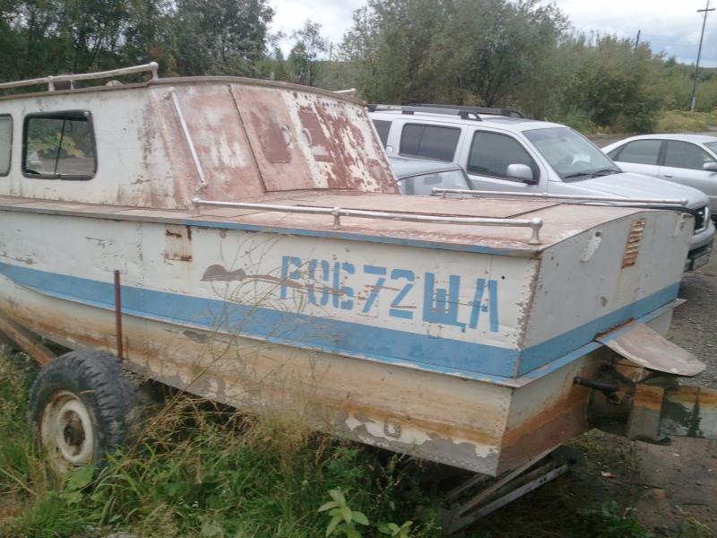 Всем привет. Очень требуется дельный совет. Стоит ли купить водометный катер советской постройки (не идентифицировал пока) в запущенном состоянии, но на ходу за 100 т. рублей. Двигатель волговский, приличная килеватость, просторная рубка. Весь кокпит занимает моторный отсек. Длина 5.5-6м., ширина около 1.7-1.9м. Говорят очень ходкий, но проглот неимоверный. Корпус Алюминевый, клепаный, множество заплат, есть пробоина выше ватерлинии (см.10).