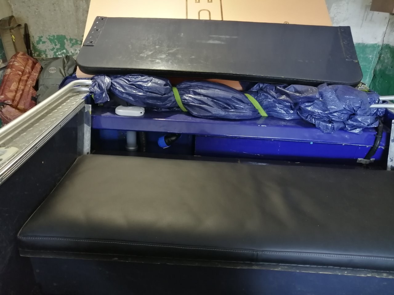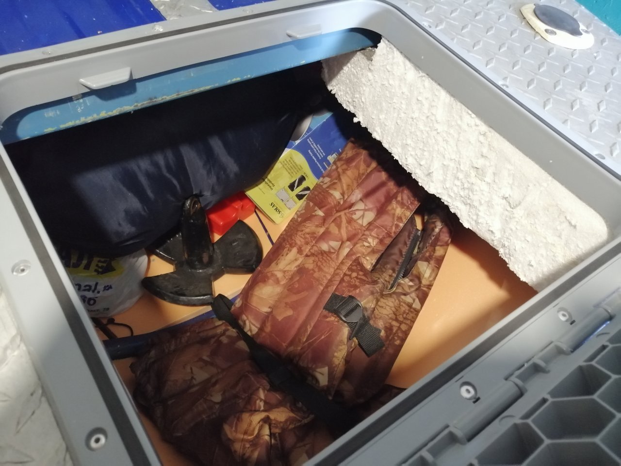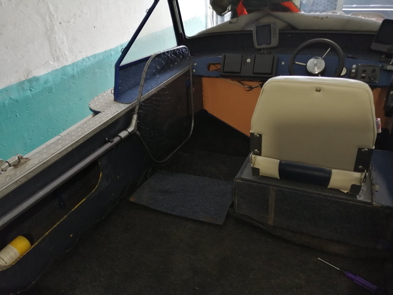 В кокпите рыбачить вдвоем тесно, решил убрать левый рундук с сидушкой.