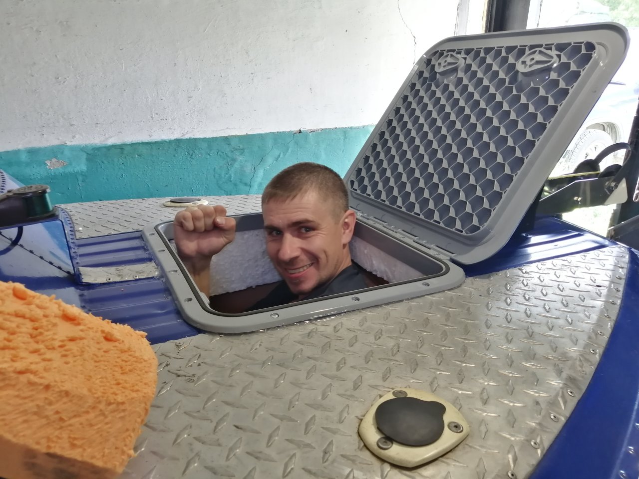 Вот поэтому я и делаю задний диван полностью съемным, а лобовое двинул вперед.В субботу ездили на рыбалку.
