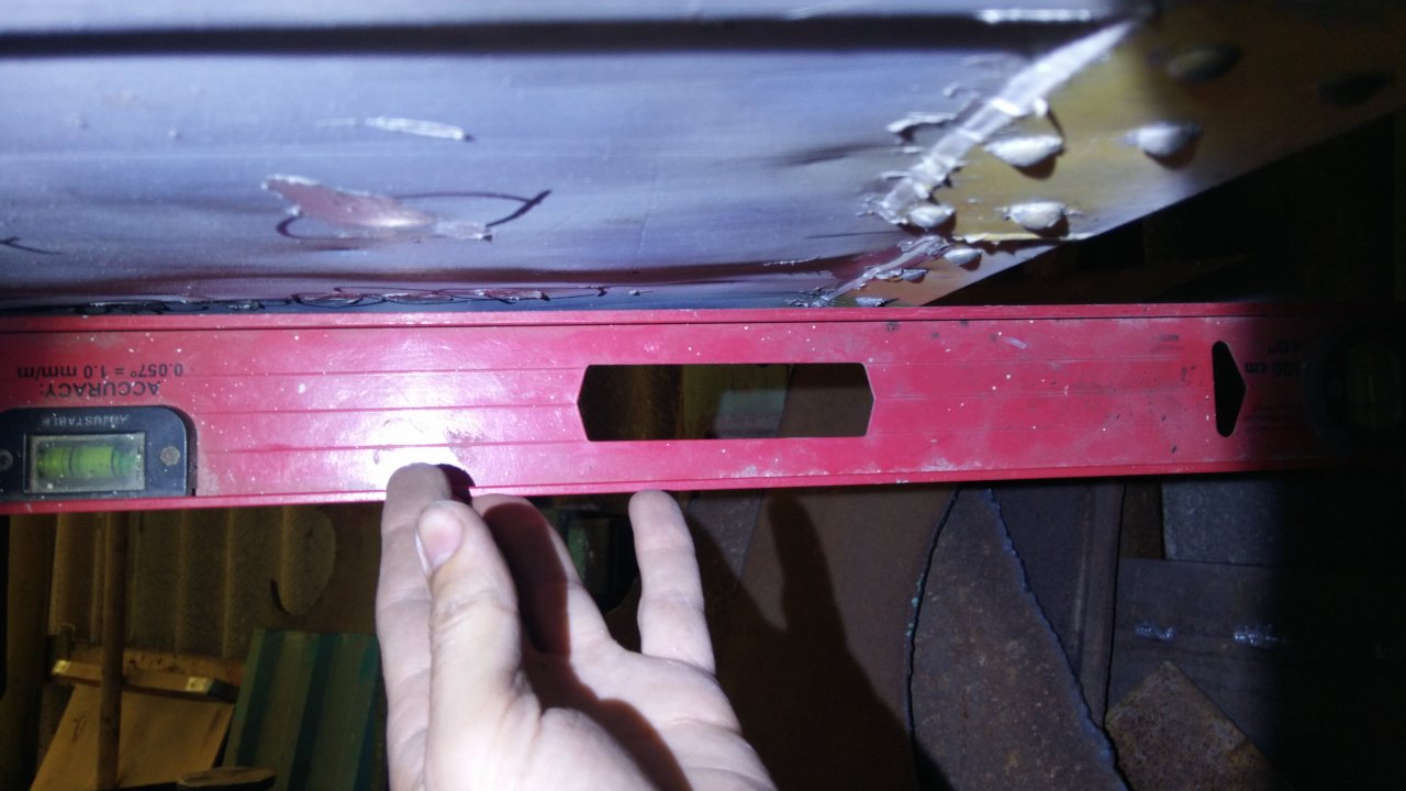 Чтобы понять, увидеть, оценить всю картину полностью и принять какое то решение по устранению, придётся переворачивать лодку, брать правило подлиннее, не меньше 3 м точно. Переворачивай, смотри и методично, по всей ширине днища проверяй правилом.