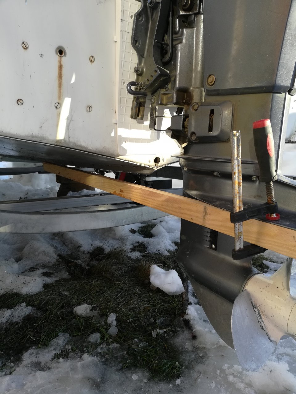 В положении как на последней фотке смело поднимай до упора рейки в киль , потом на воде еще попробуеш поднять до прхватов на поворотах , и опустиш на одно отверстие .Переставляю мотор с крыма (ща 40 л.с. не поставил ГИМС на учет) стоял на профильной трубе плита была почти вровень с килем и без клина шел так себе не было желания эксперементировать все равно все днище мятое. На прогрессе накинул нужен совет надо ли поставить клин и стоит ли приподнять мотор повыше (на ту же профильную трубу 1.5- 2 сантима). Гляньте фото там на 2ой и 3ей дырках. Я думаю надо приподнять.... Заранее спасибо за совет желательно из личного проверенного опыта!.