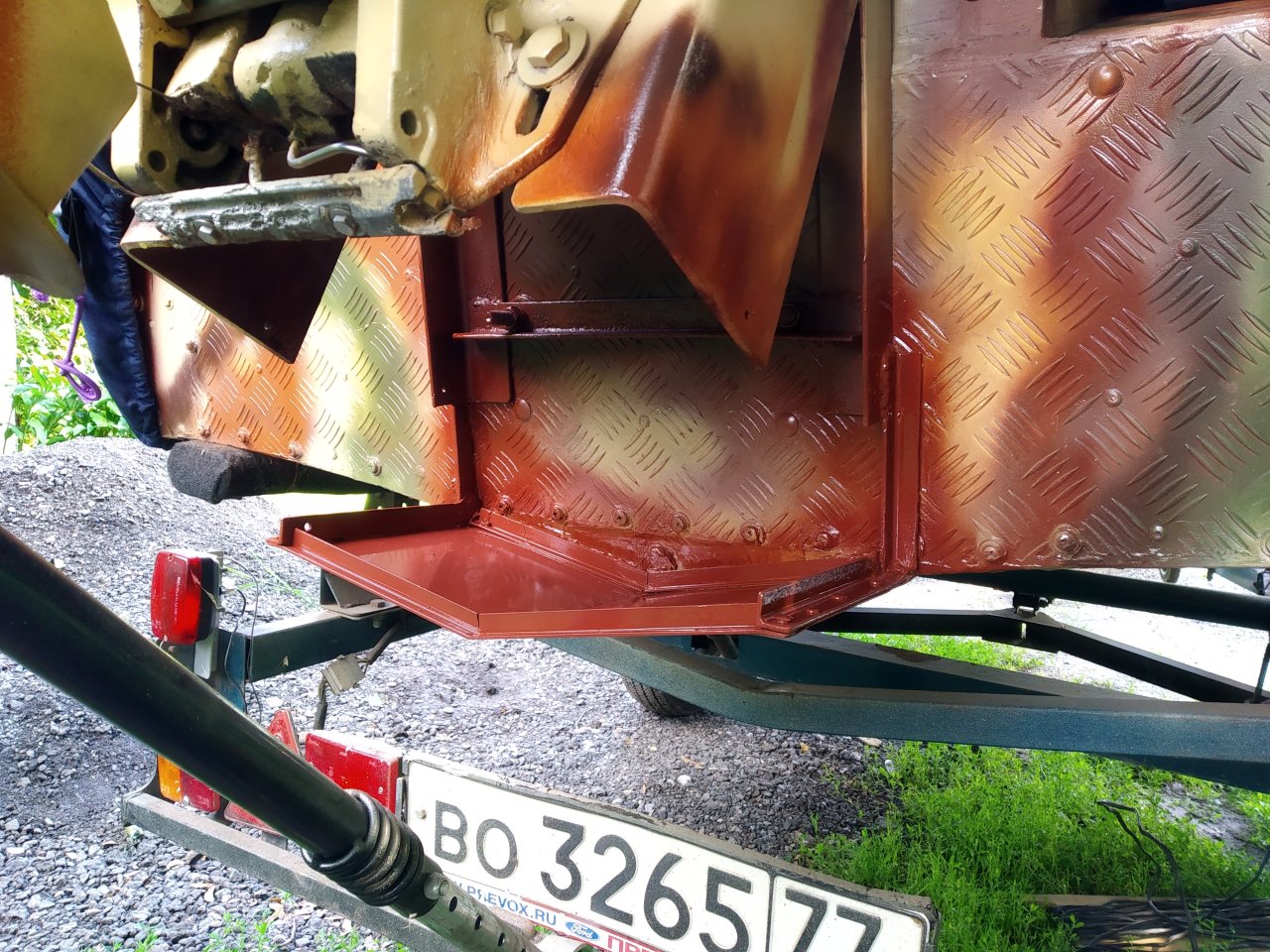 Приварены поперечины для дополнительной жесткости и крепления рамы к транцу лодки.