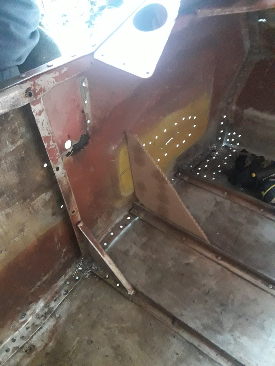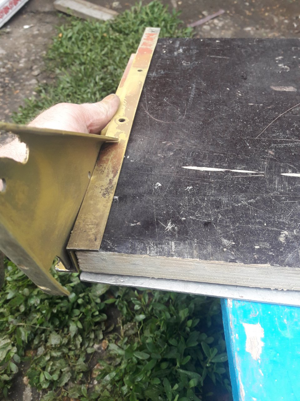 2.Высверливаем/убираем старые заклепки с учетом того чтобы новый форштевень залез на 2-3 заклепки под переднюю накладку и лег на 2-3 заклепки на заднюю накладку.