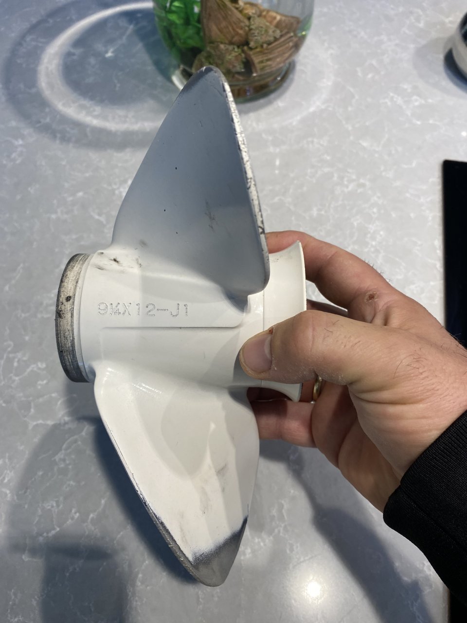 смывки. Пошел в гараж и немного пошаманил. Краску смыл и шлифанул без фанатизма. Кстати черкну пару строк по ходовым. В стоке винт солас, заявленный шаг производителя 9/11 крутил 6480 и ехал 38км при общей массе комплекта 200кг ( лодка, мот, 20л бенэа, шмурдяк, и я ) при мах. оборртах согласно ТТХ мотора 6500. После рук Андрея имеем обороты 5800 при массе 200кг и скорость 40км. Так же был отправлен и стоковый винт 9/11 на перегиб в больший шаг, так как крутил максимум по ТТХ 6500 при той же загрузки 200кг, скорость 40км. чуть больше трети газа. В полный газ ни скорость ни обороты не росли винт просто ковитировал. После проверки у Андрея оказалось что диаметр не соответствует заявленному ( вангую что был сточен сознательно предедущими владельцами). Диаметр наварили и перегнули. На выходе получили винт 9/12,5. Обороты 6050 при загрузке 200кг скорость 43км. Как то так. Пы.сы. Андрей спс за работу.:good: