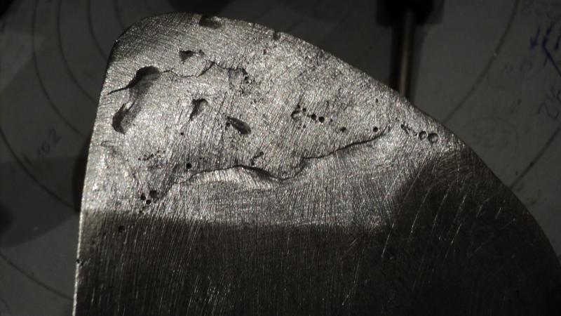 Под краской сплошные поры , в порах сколотый вольфрам . Так не надо было делать .