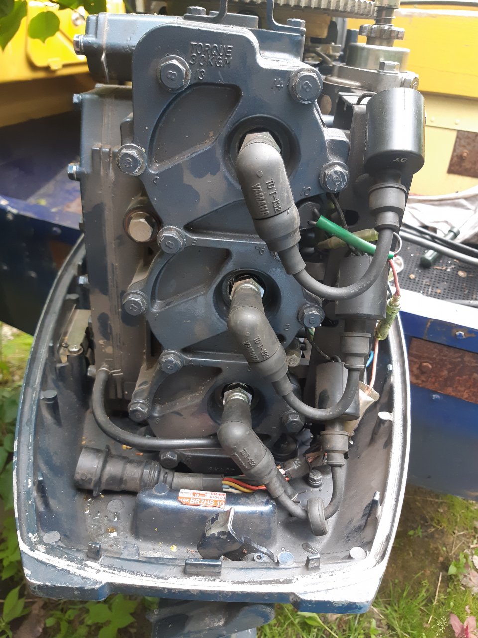 Вместе с Сарептой достался мотор ямаха, на колпаке висят пластиковые таблички 50 с двух сторон, на шильде 40 л.с. все что смог найти в инете, это то что голова от 40 а карбы от 50, год то же не смог определить, но на высоковольтнике слабо читается 1988, ну мне так кажется, мотор был с автомиксом. Так вот вопрос к знатокам, может кто сможет узнать по "глазам", хотелось бы понять сколько он все таки сил и какой год, может кто то знает лучше матерьял. Заранее бланодарю.
