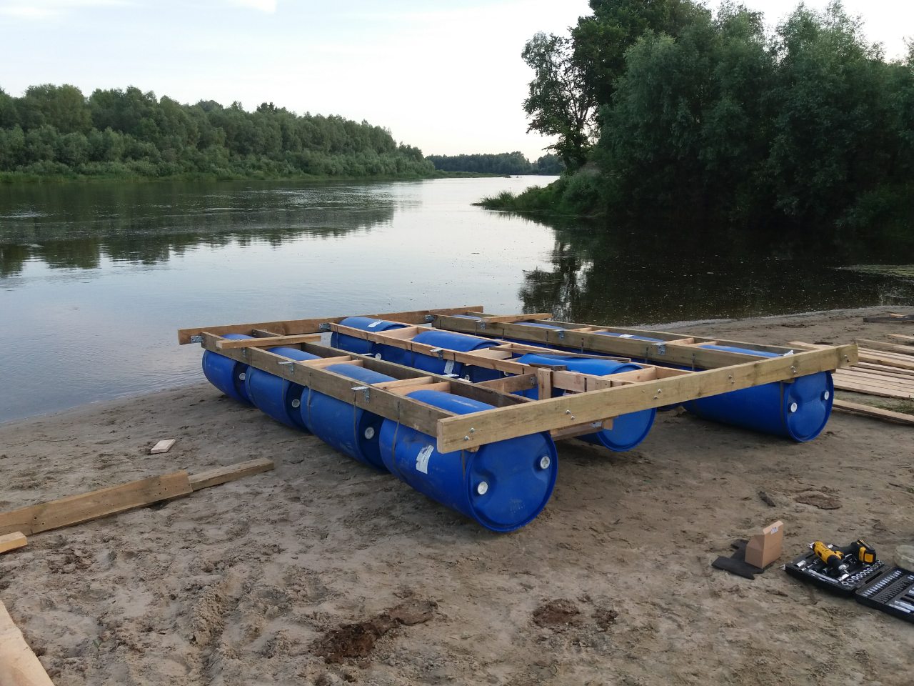 Поздравляю! Привет работникам ГИМСа.Заехал в гимс, изложил примерные характеристики веса и размеров, сказали если по нашему району буду болтаться, можно без оформления) даже телефон дали, куда звонить если кто-то докапается. И о чудо пока сидел ждал, познакомился с человеком у которого участок земли у самой воды, есть нельшой причал, он за небольшие (смешные) деньги готов размещать плот у себя). В связи с этим решил поставить все это дело на бочки, что опустило бюджет на землю (бочки из под ГСМ можно взять 300-500р на каждом углу)
