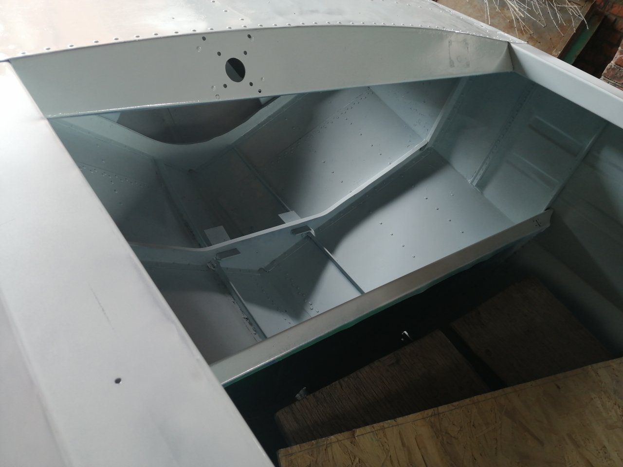 У меня в форпике бак, от жигулей к стенке перегоротки присабачен, как то надо вес мотора компенсироватьСегодня прокрасил внутрянку,то что будет потом видно ,немного палубу и транец,белым,но это тот цвет которым будет лодка это так предварительная прокраска..