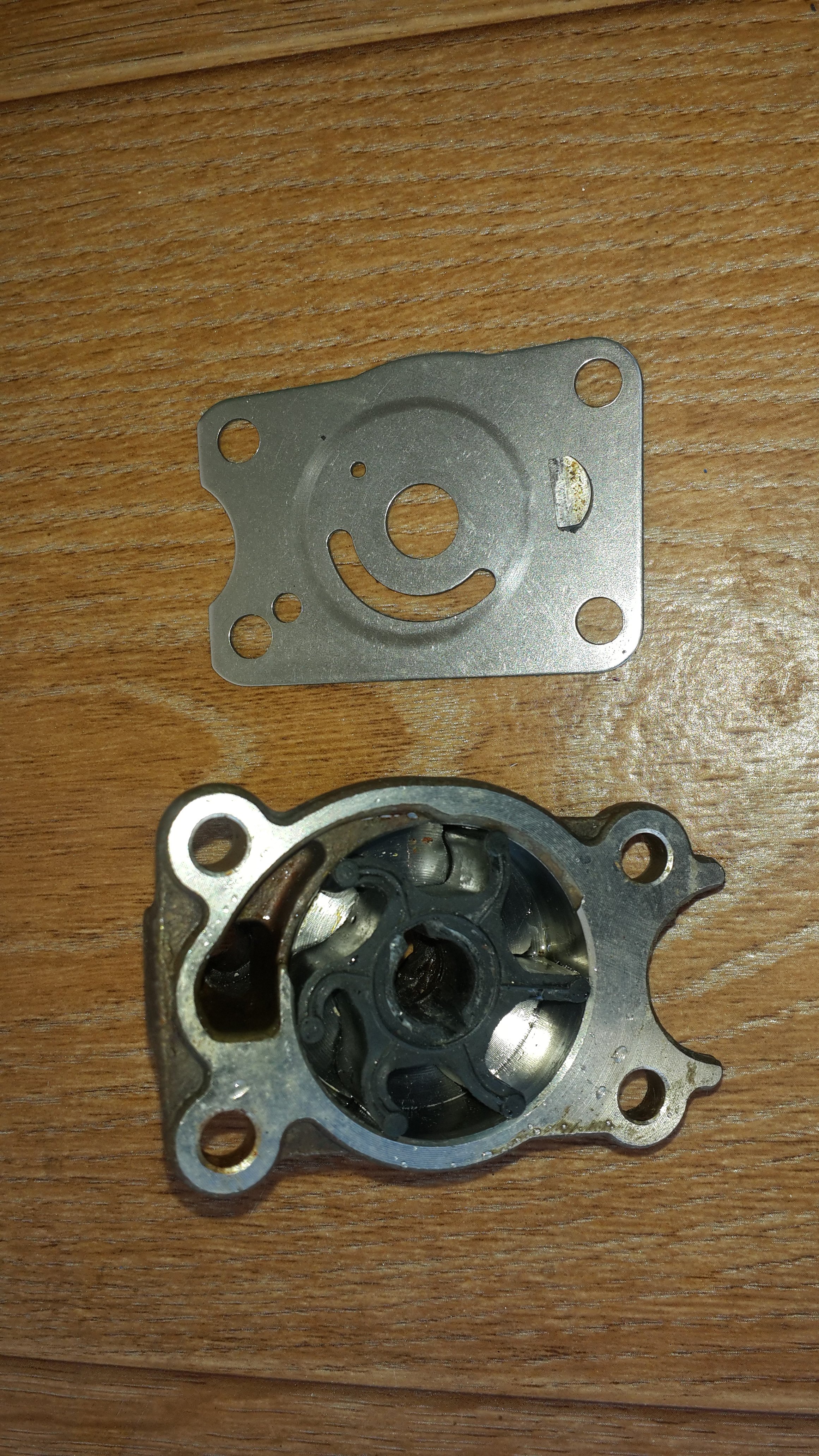 Всем добрый вечер. Подскажите хорошим советом. Сегодня решил заменить крыльчатку с рем.комплектом помпы на DT-4. Всё быстренько поменял, за одно и прокладку между сапогом и двигателем. И тут начались проблемы: по ходу помпа не работает, с контрольки вода не идёт. Я уже сегодня раз пять эту помпу разбирал-собрана правильно. Уже и дрелью крутил вал-вода с отверстия крышки помпы бежит но ели ели-не знаю она так и должна бежать или нет??. Куда смотреть ума не преложу)).
