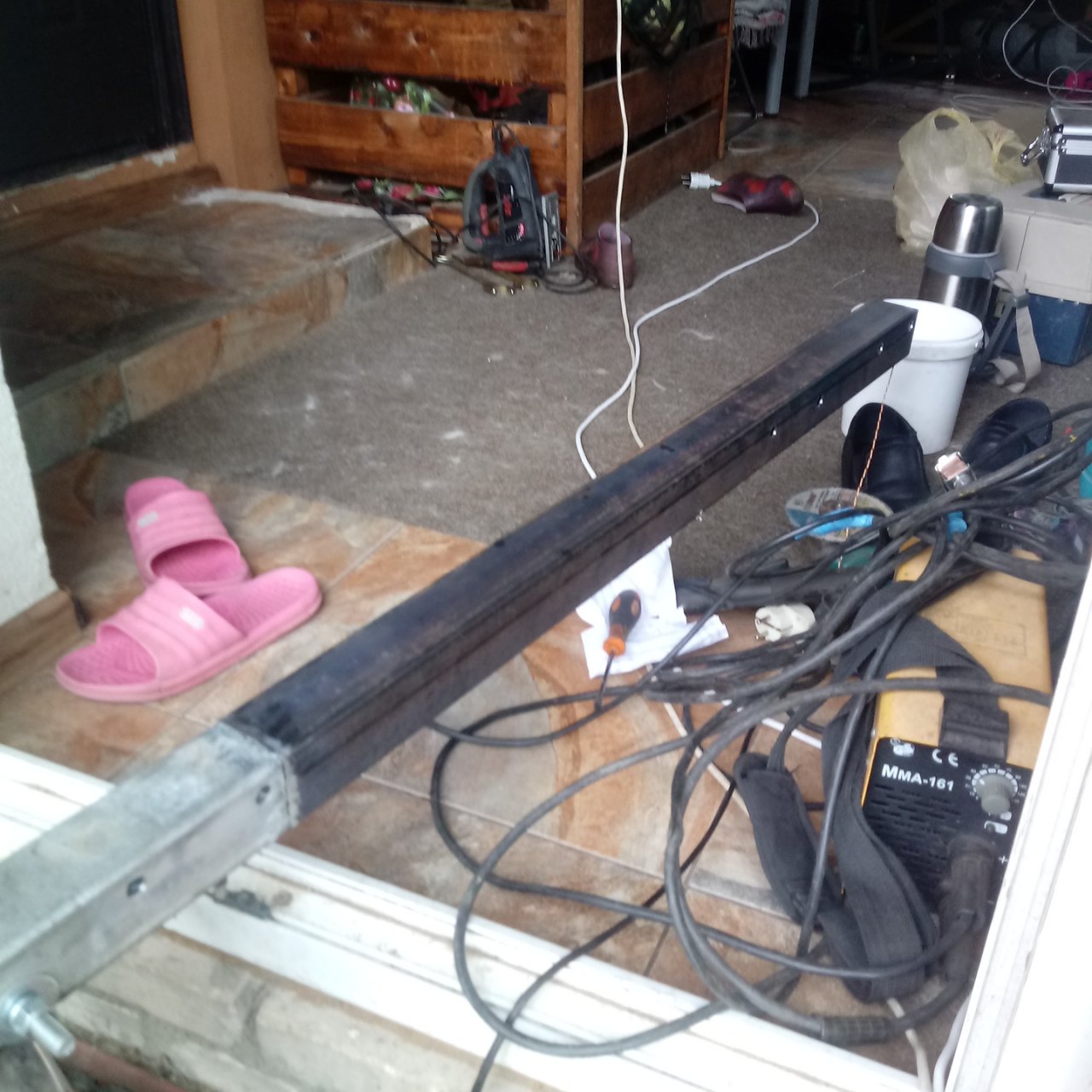 Даже мощный уголок свареный в трубу слабоват. Уголок в трубу и с низу ещё два уголка в тавр сваренный.