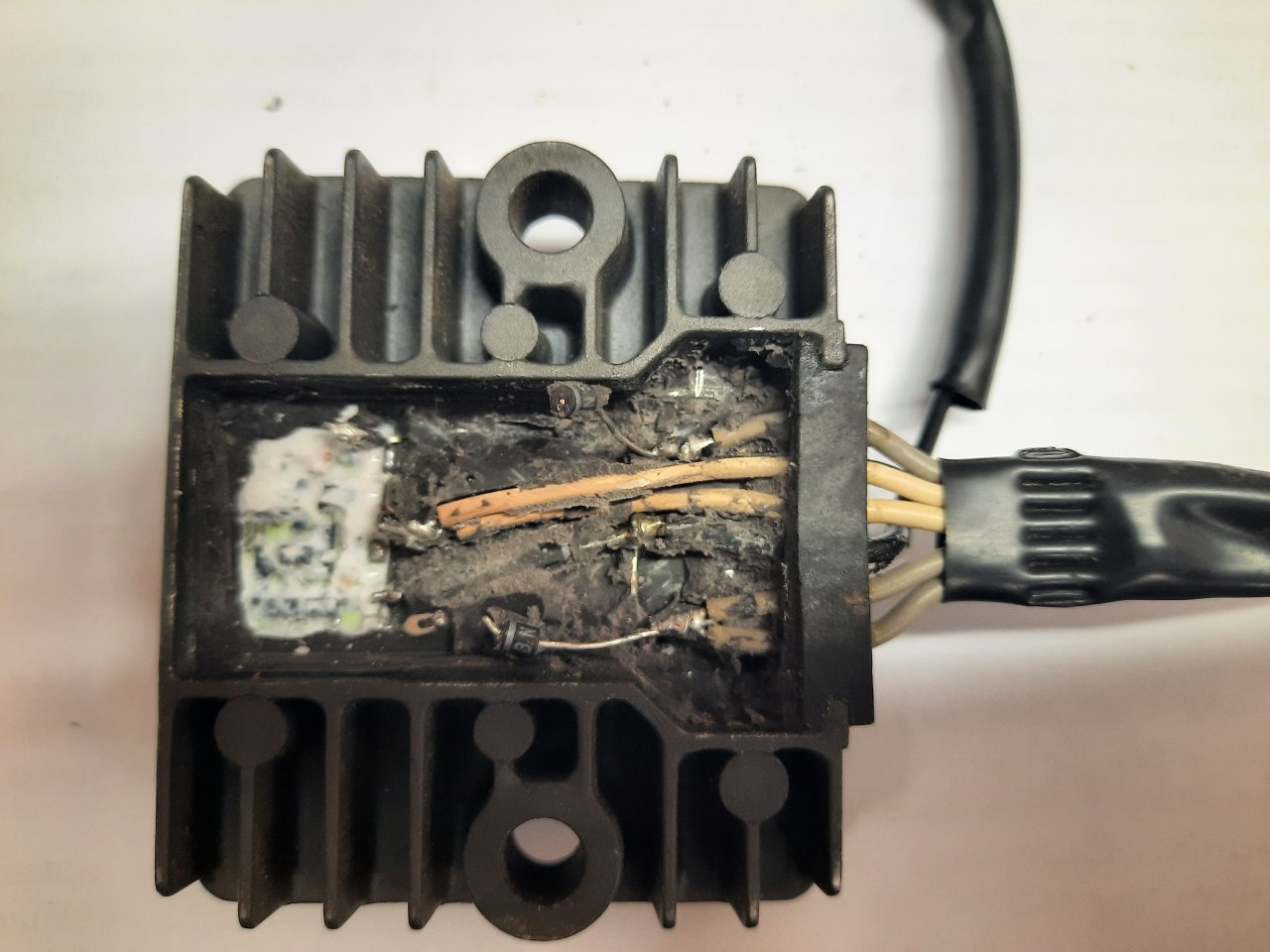 Попал в руки регулятор от BF-50. Дохлый точно, ибо герметик вздуло. Чего и как было под ним - неизвестно, не я начал вскрывать, но поломанные диодики и провода там были, и оторванные контакты тоже.