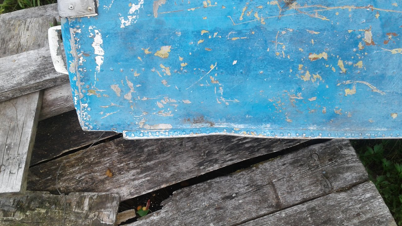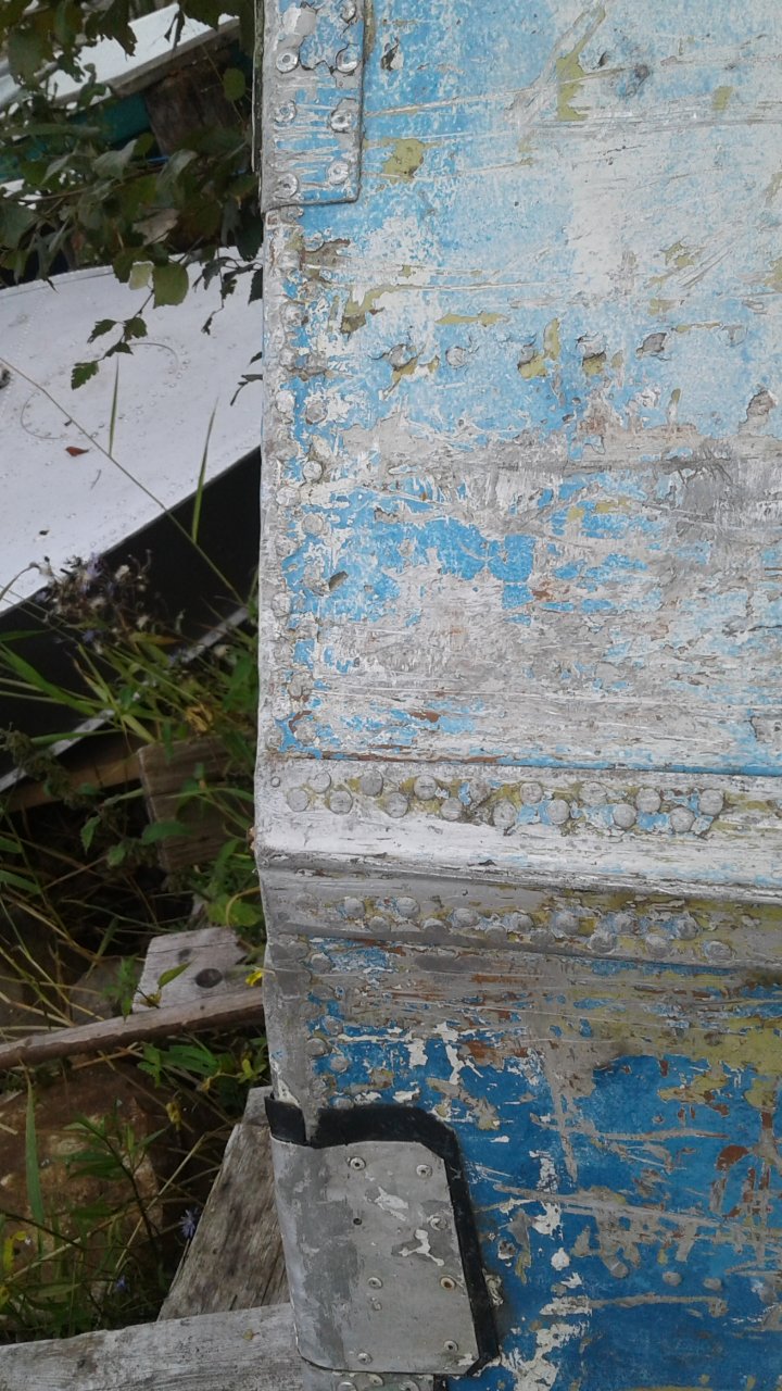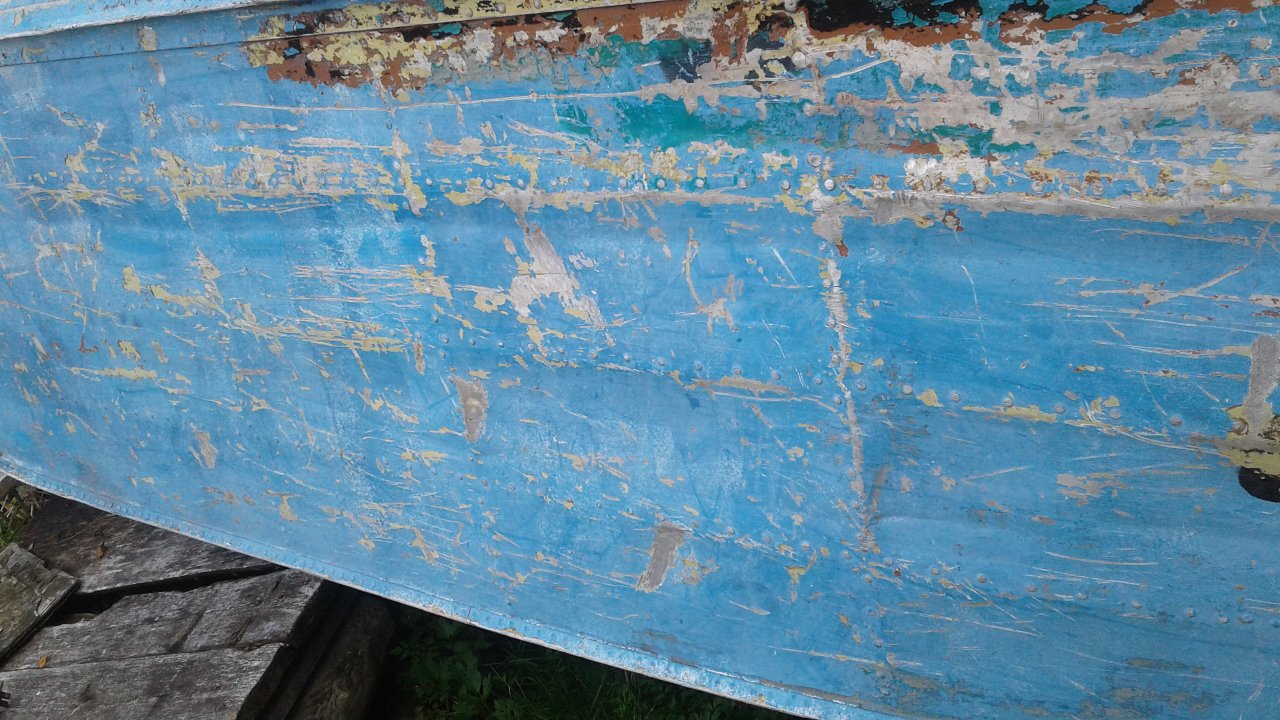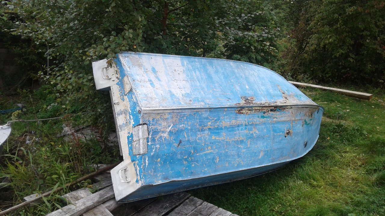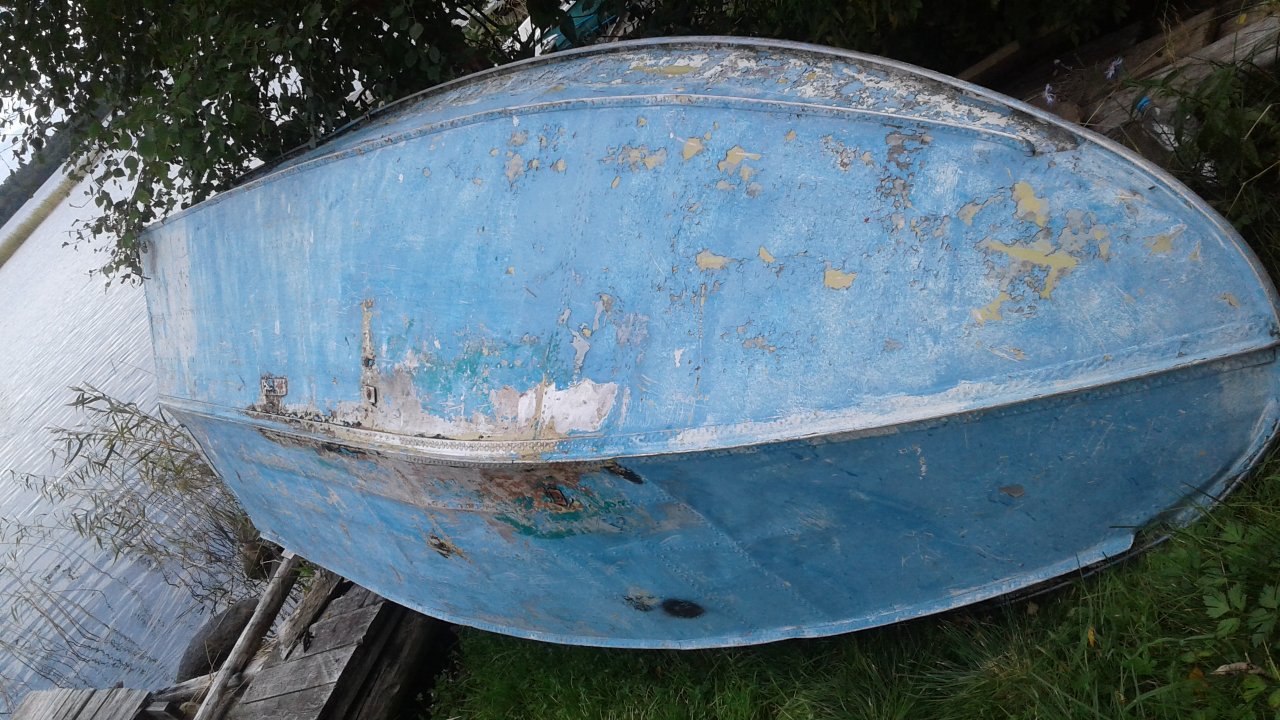 В транце, на стыке залатаны трещины, на днище есть сильные потертости о камни(2 шт.), заклепок 18 стерто.