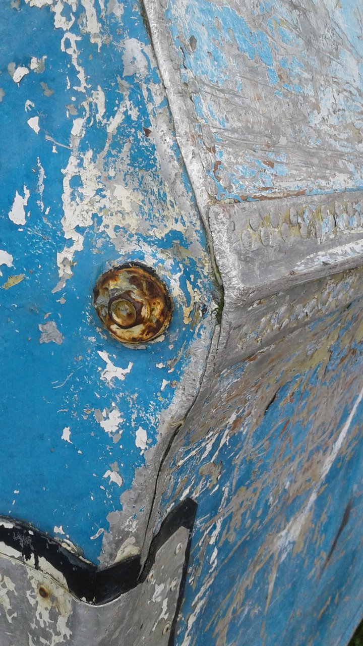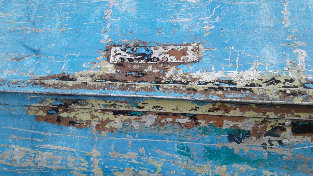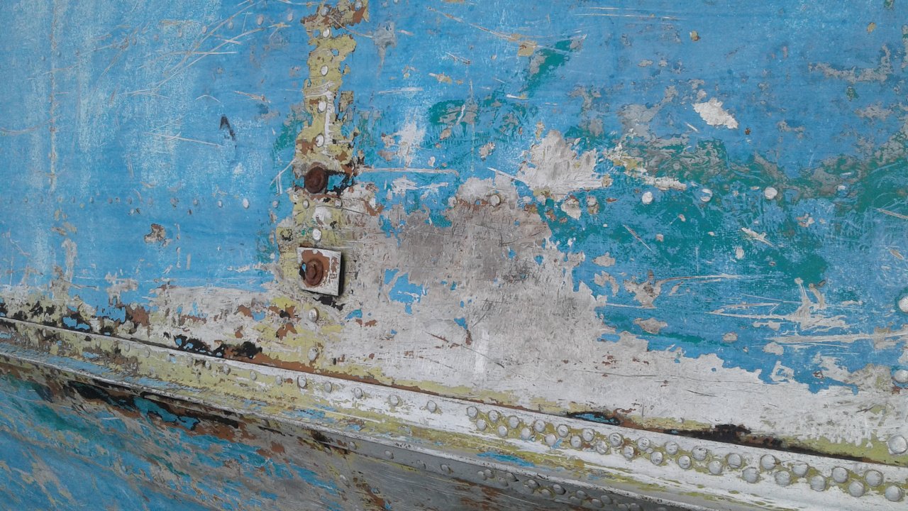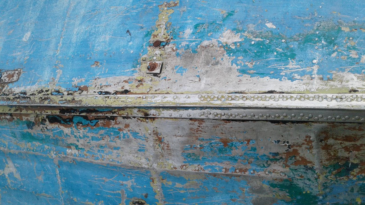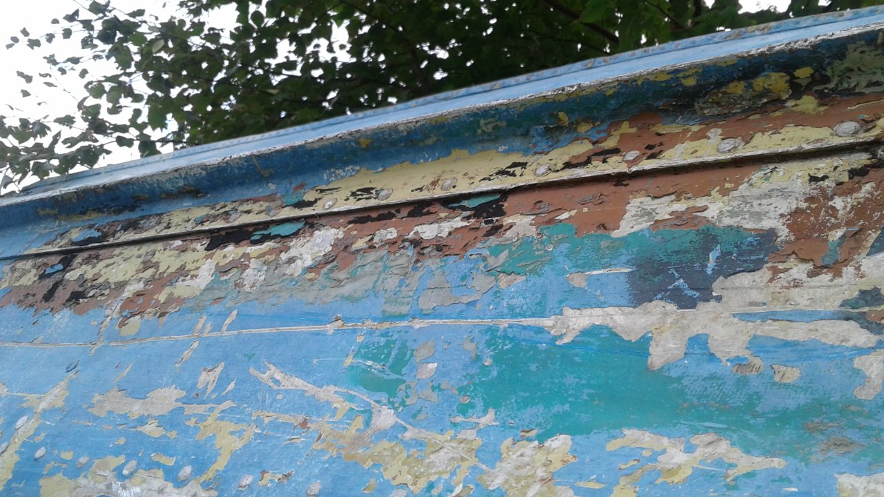 В транце, на стыке залатаны трещины, на днище есть сильные потертости о камни(2 шт.), заклепок 18 стерто.